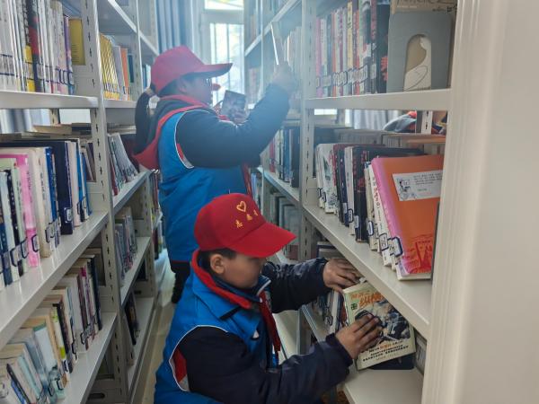 参观结束后,同学们满怀热忱,迅速投身到图书馆管理“岗位”。在书架间,有的同学专注核对书籍编号,将放错位置的图书逐一归位;有的同学俯身弯腰,耐心整理书架底层的书籍,力求每一本书都排列整齐。通过辛勤付出,图书馆变得井然有序,而同学们也在这一过程中,用实际行动诠释和传承着雷锋精神,在知识的海洋里留下了一段温暖而难忘的青春记忆。
