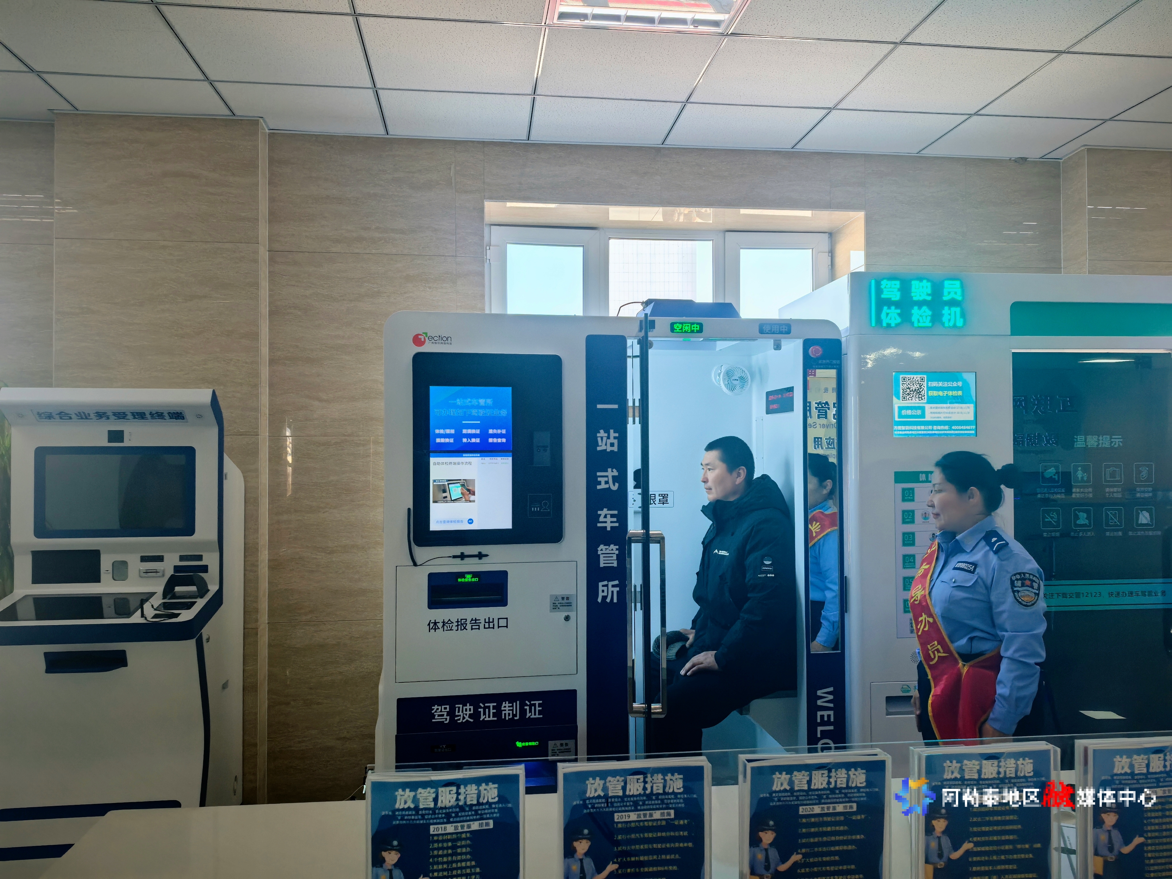 近日,阿勒泰市首台驾驶证自助制证机在市公安局交警大队车管所投用,该设备集语音引导、身份核验、自助缴费(通过交管12123APP扫码)、制证等功能于一体,可“一站式”办理期满换证、损毁换证、遗失补证等业务。市民仅需携带身份证,按提示完成拍照、缴费等流程,最快5分钟就能领取新证。此外,设备还搭载了“警医通”自助体检系统,驾驶员无需到医院进行体检,10分钟内即可完成体检和拍照。