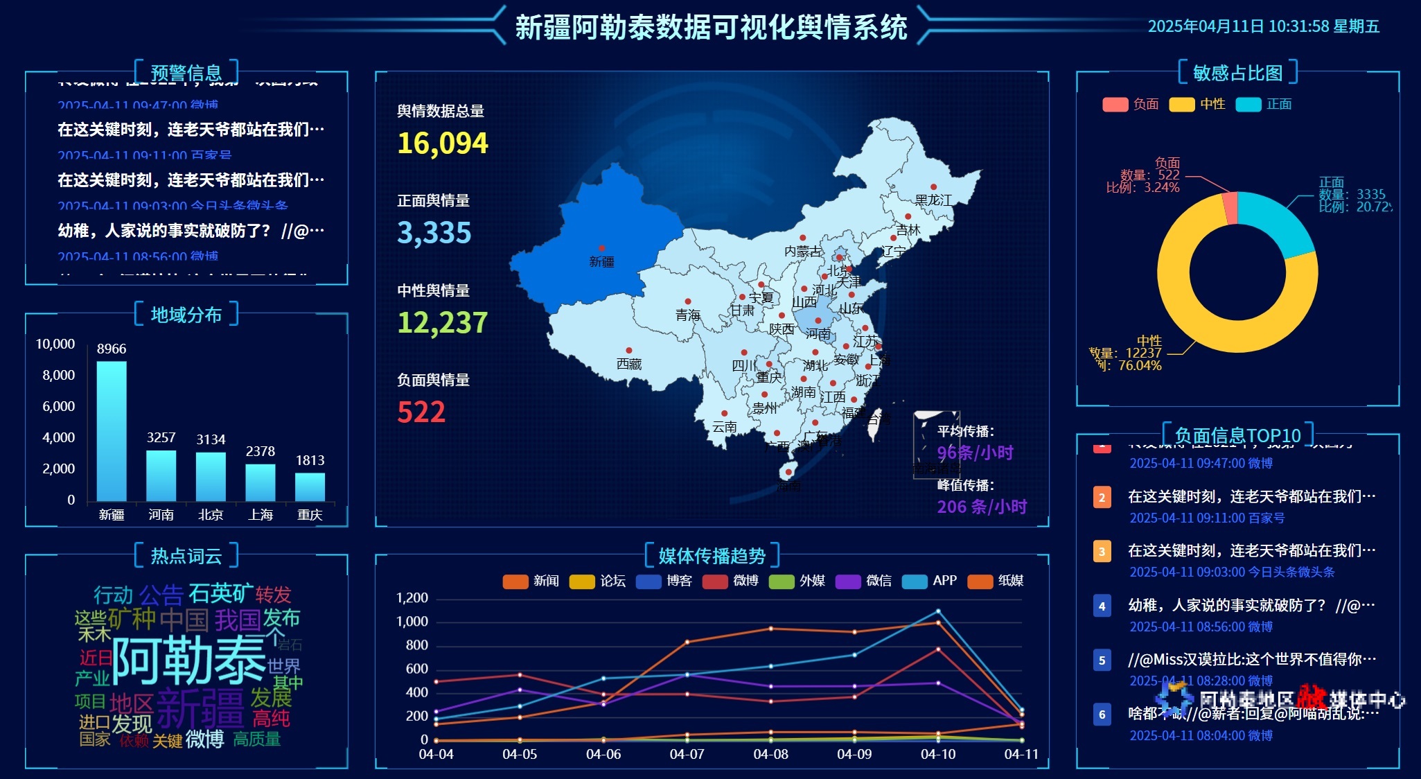阿勒泰地区舆情和网上有害信息监测系统。(图片由吉林援疆前方指挥部提供)