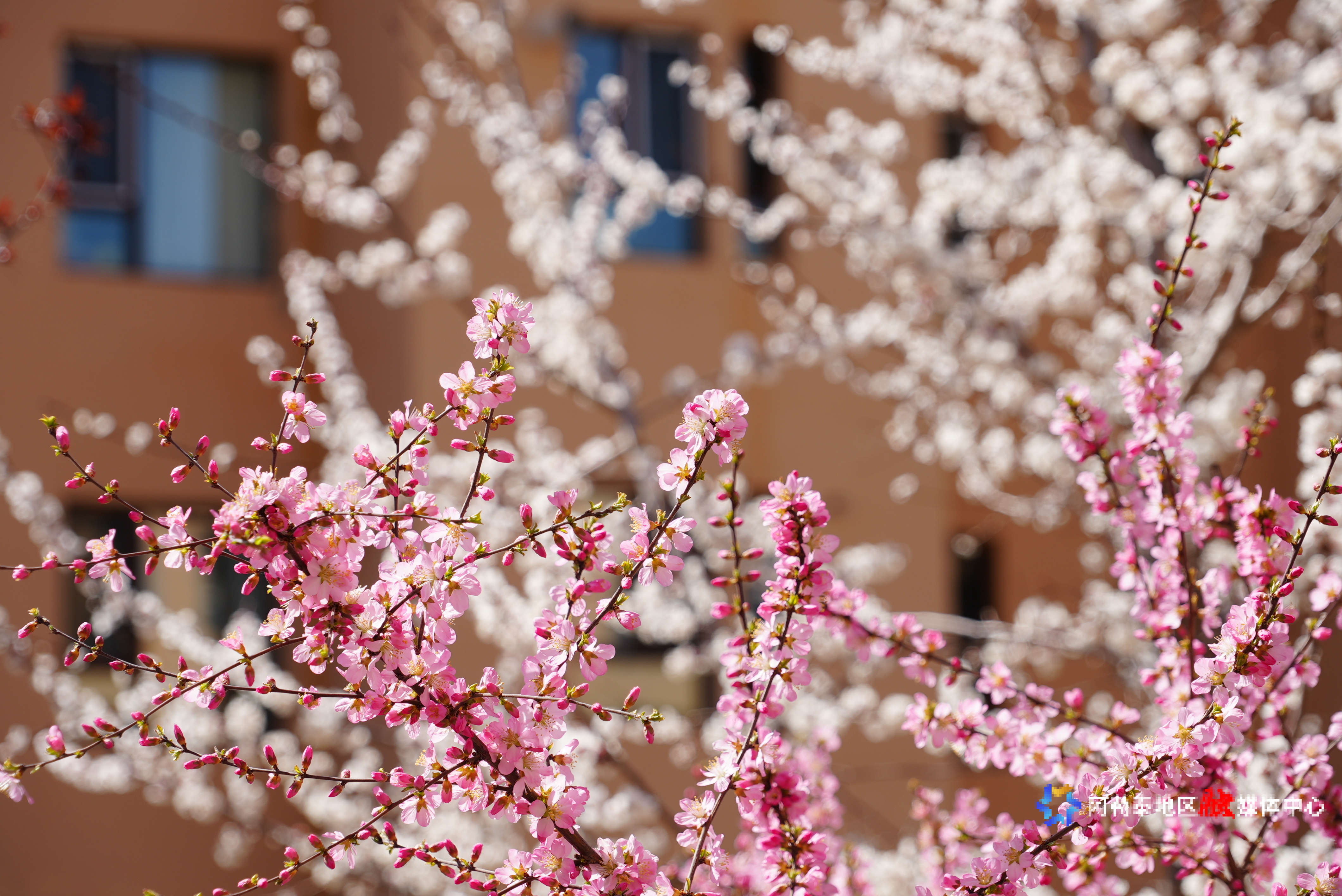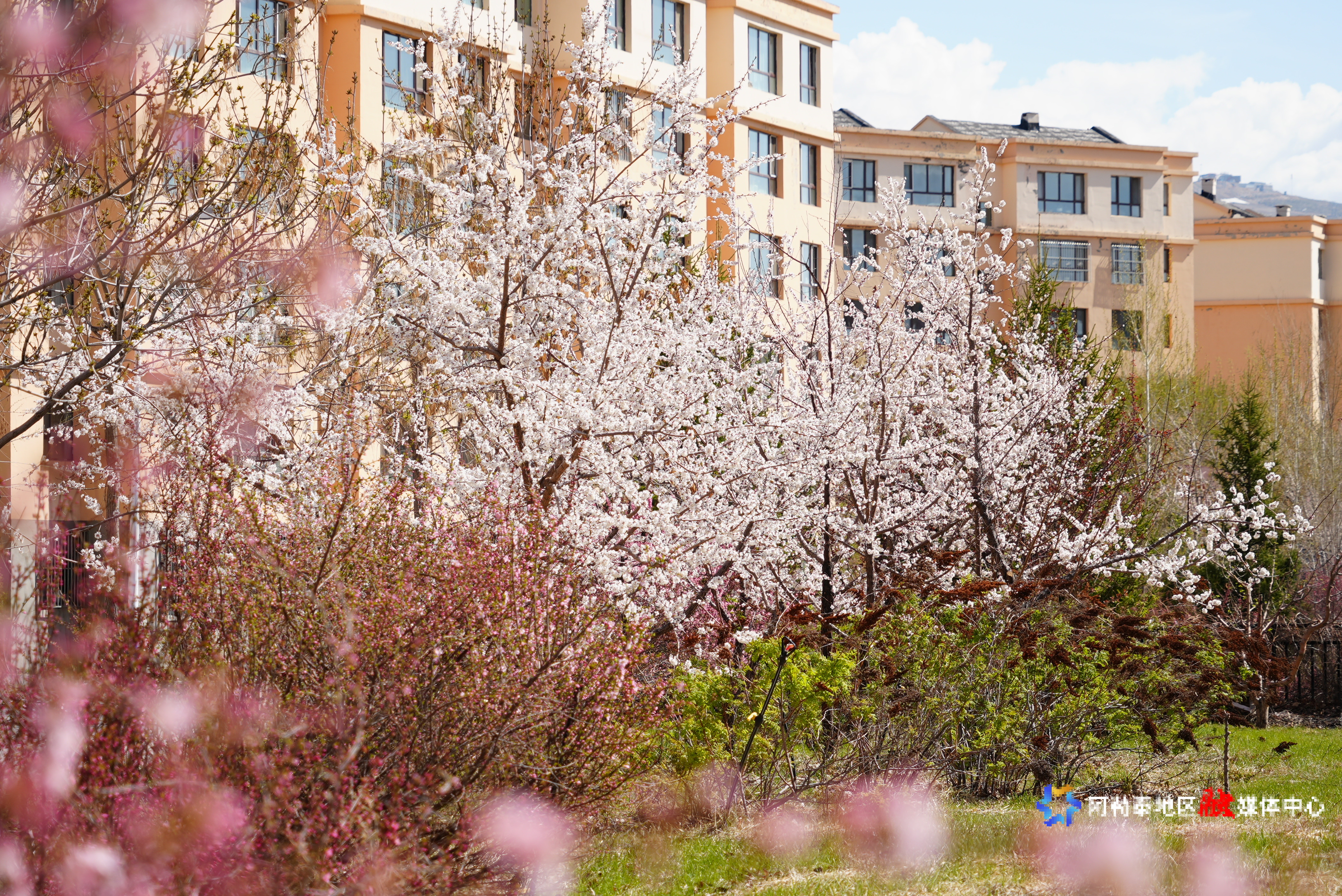 阿勒泰新闻网-阿勒泰地区融媒体中心(记者 代维利)进入五月,阿勒泰市恰秀路街道恰秀社区恰秀南苑小区宛如一幅绚丽的画卷。深红、粉白、明黄等各色花簇争相绽放,在楼宇间交织出一片梦幻之景,居民共赏“家门口的花事”已成生活日常。