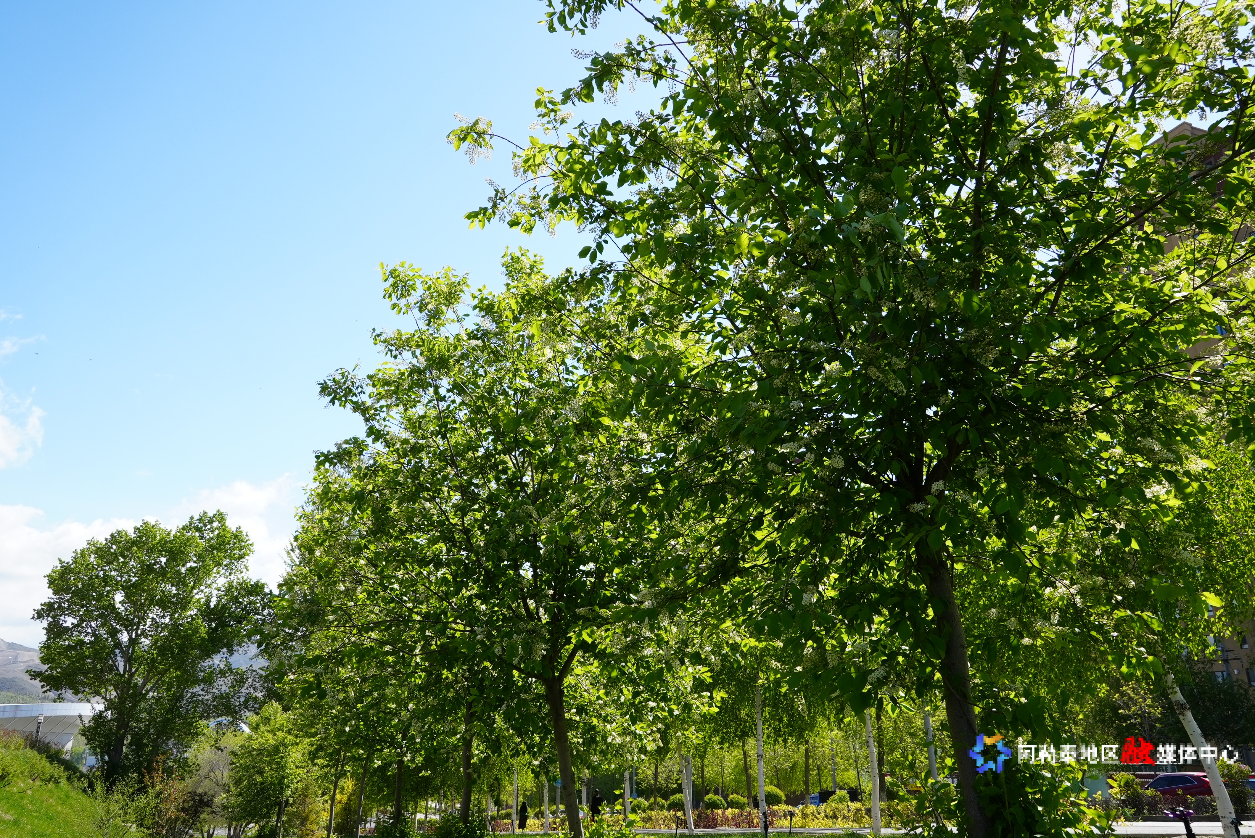 初夏时节,雪都阿勒泰迎来稠李树花期。在阿勒泰市望湖街一侧栽种的稠李树鲜花盛开,传递着初夏的温情浪漫,形成一条香雪长廊。满树簇簇白花为夏日的山城平添了一道靓丽的景致。