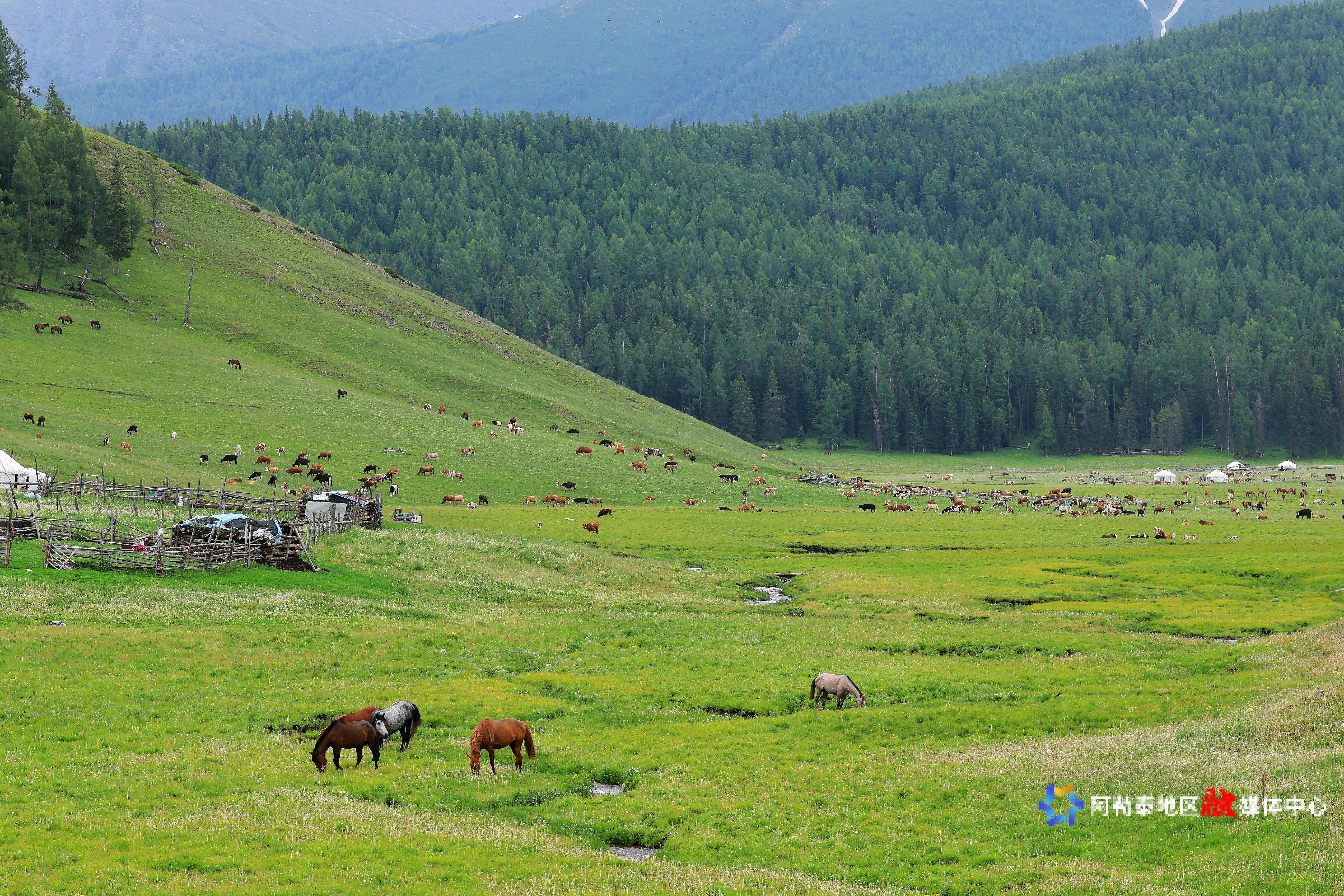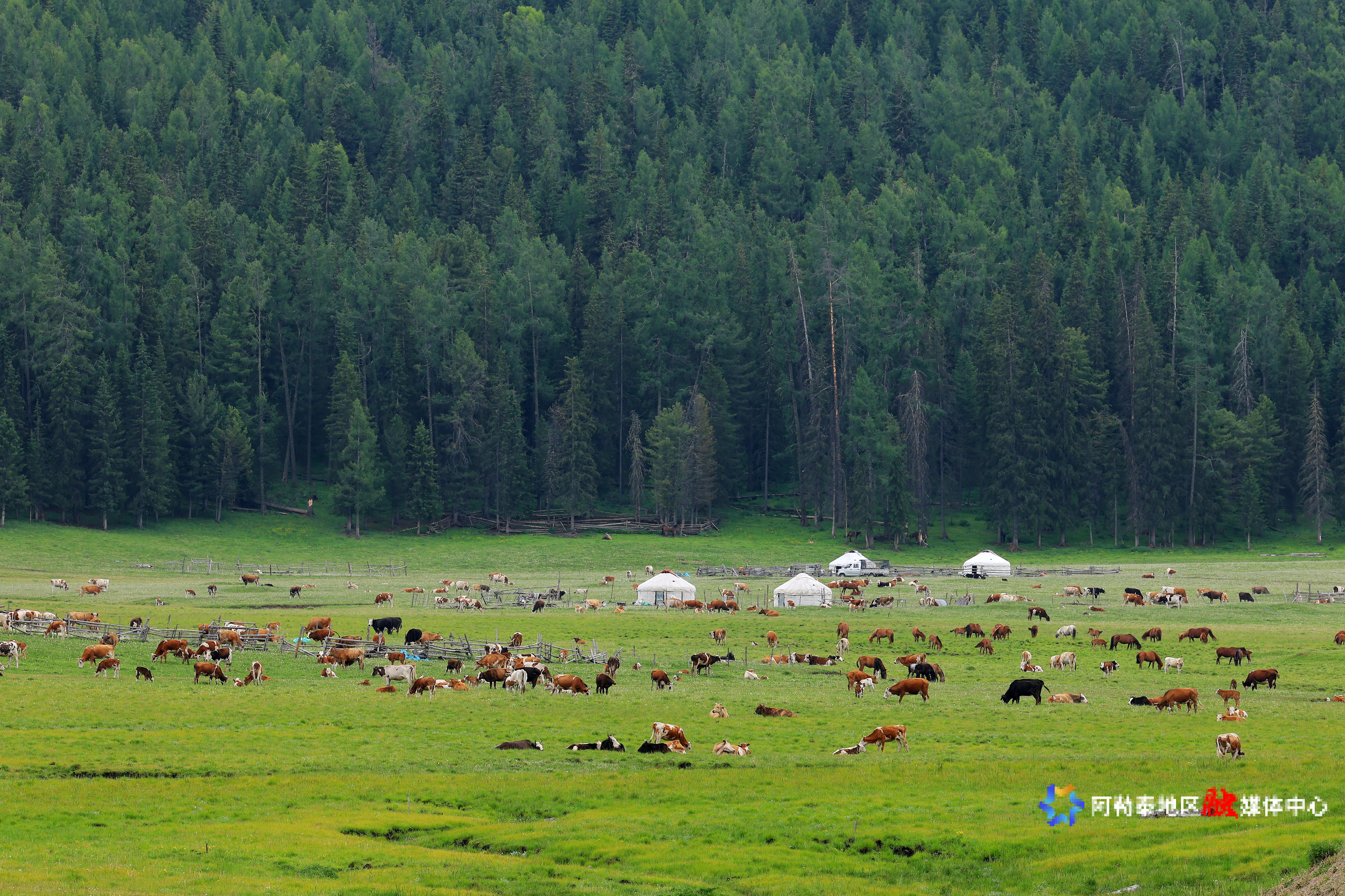 2025年6月14日,哈巴河县那仁夏牧场美景。记者 阿尔达克·拜斯汗 摄