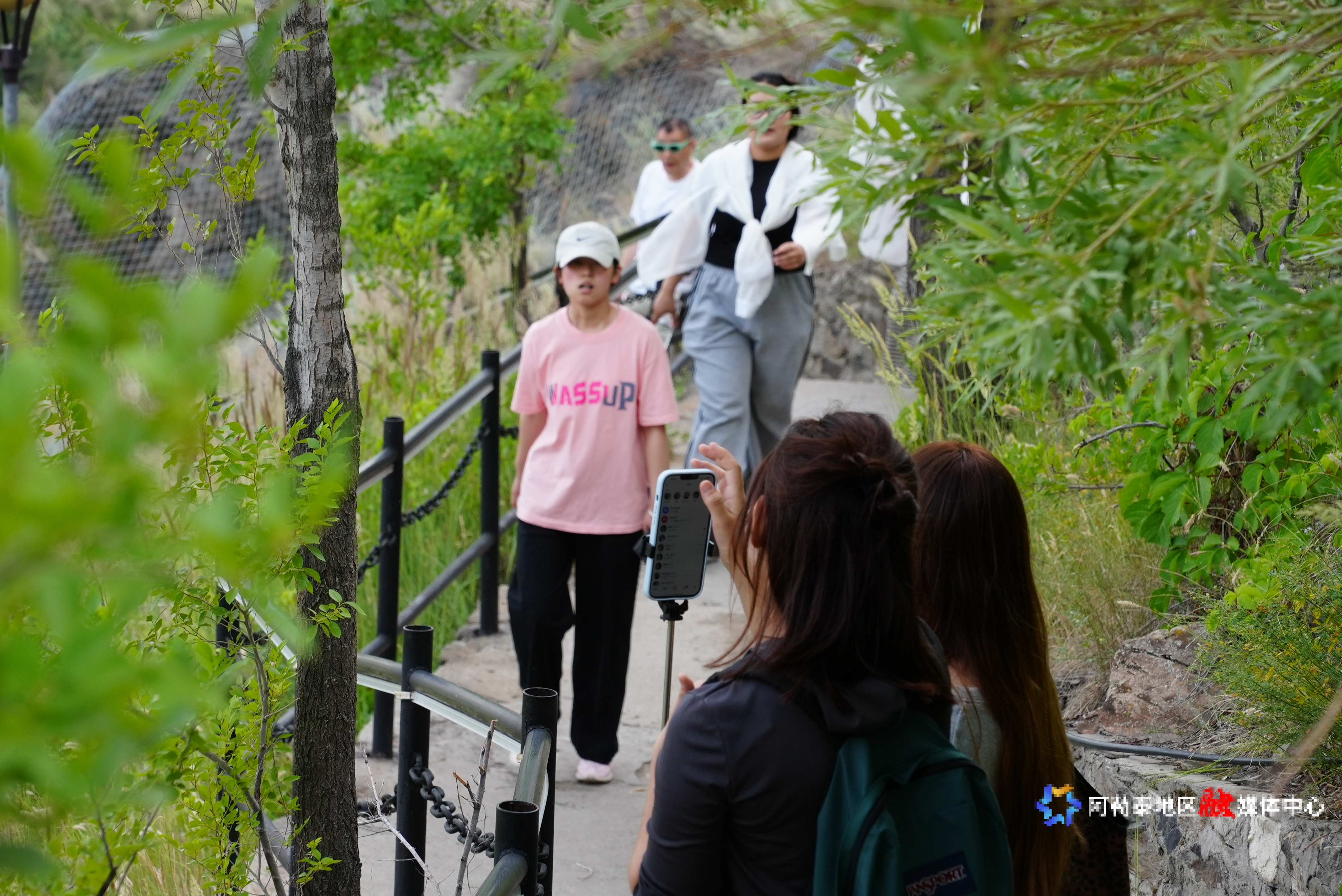 6月27日,正在阿勒泰市驼峰景区拍摄抖音和游玩的游客。