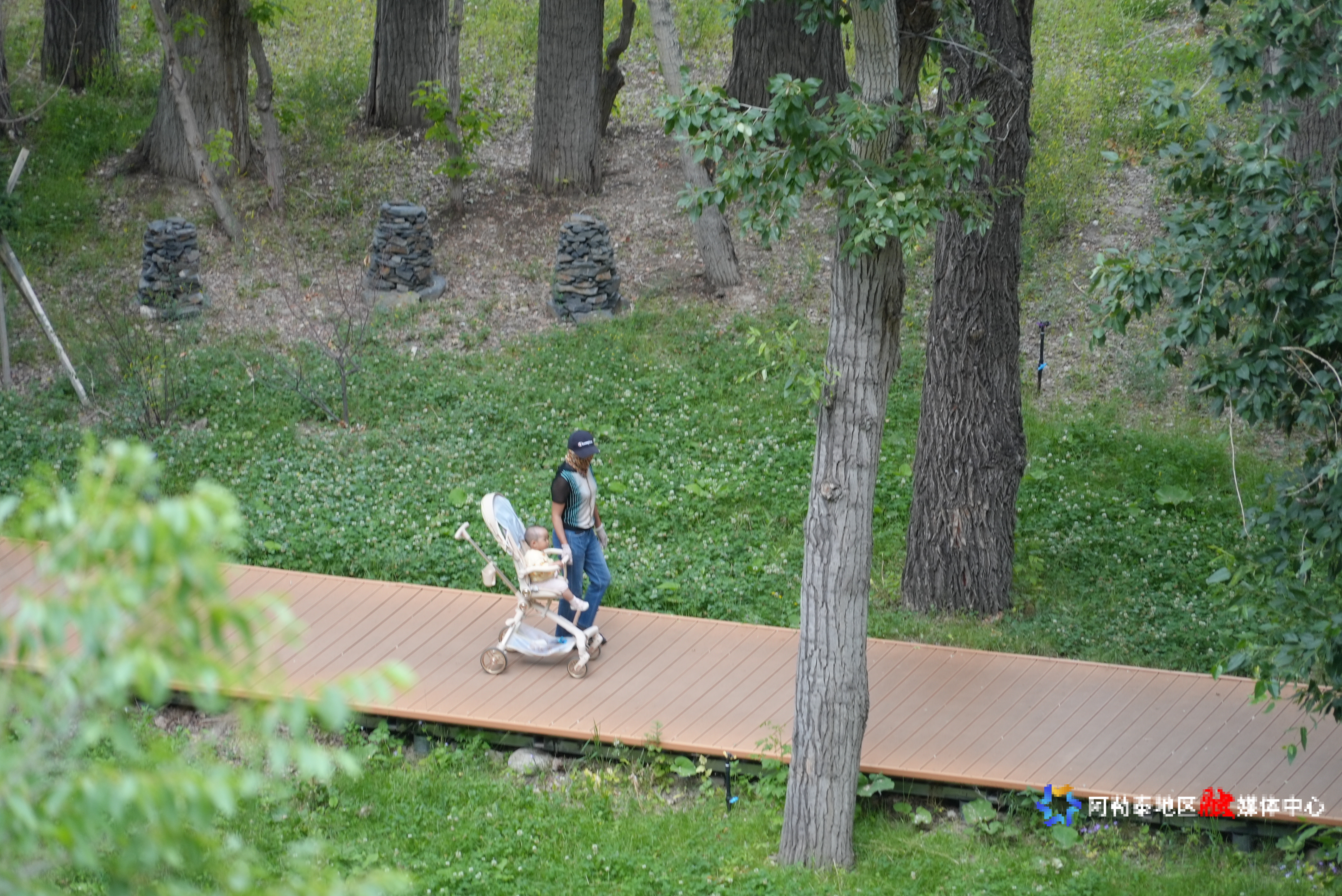6月27日,正在阿勒泰市驼峰景区游玩的老人和孩子。
