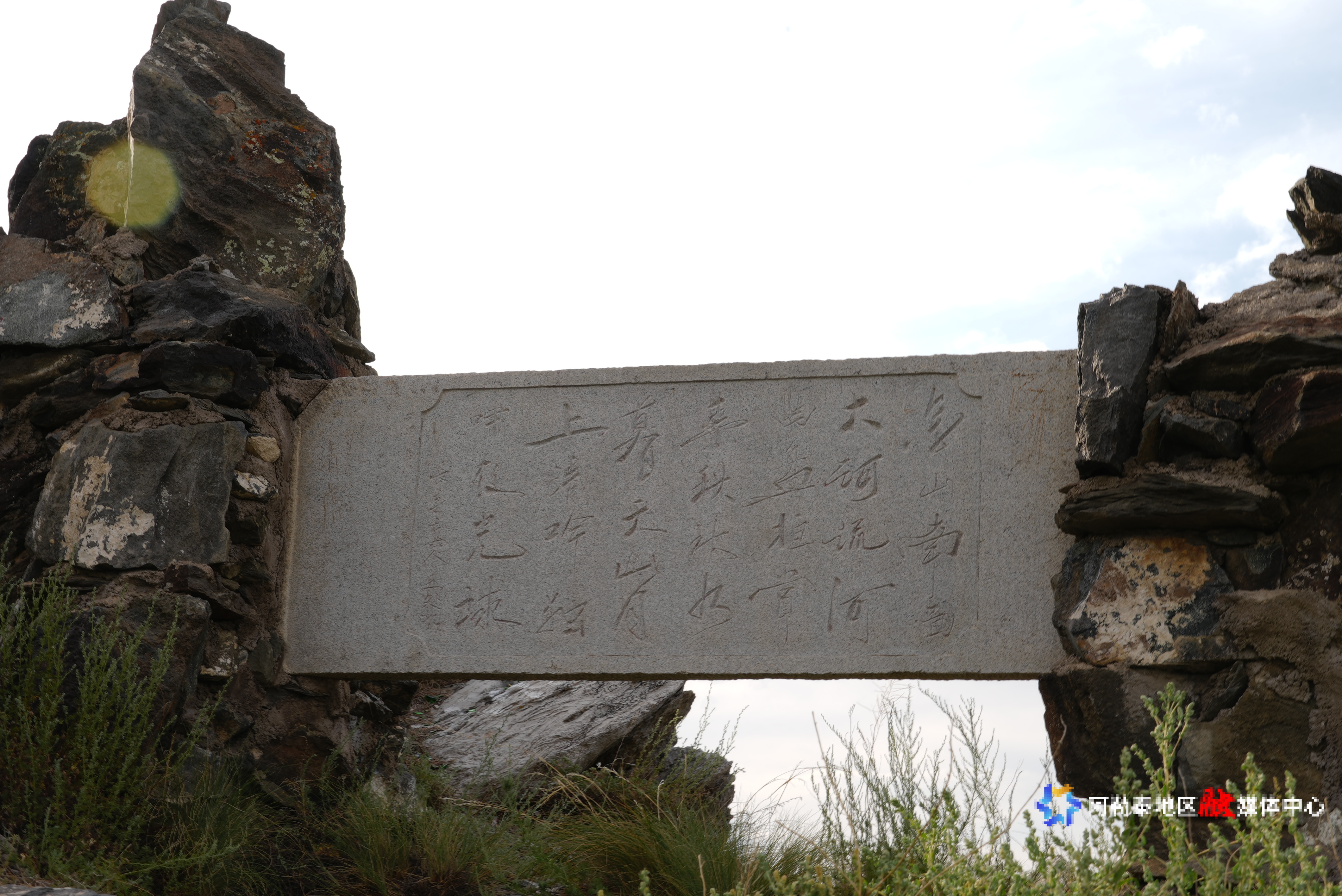 立于驼峰景区丘处机诗作石刻。