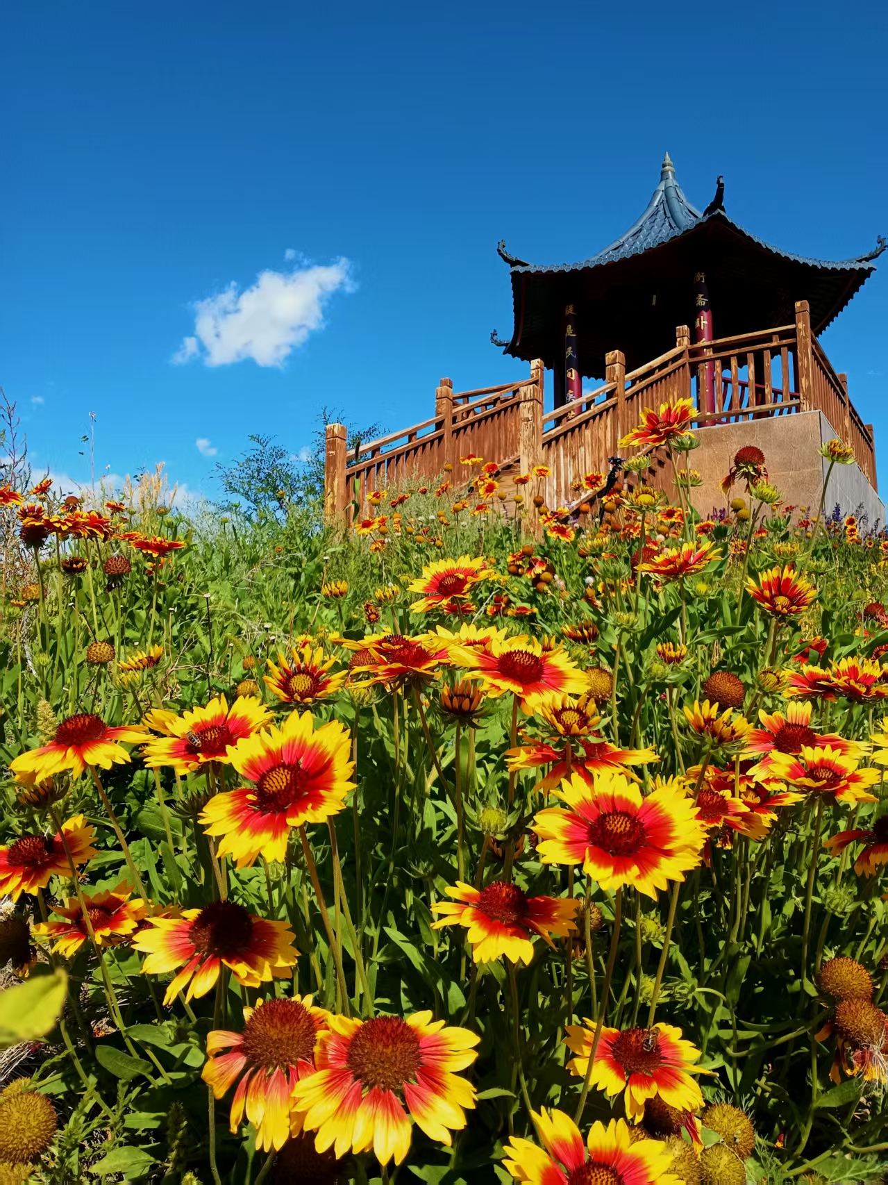 近日,在吉木乃县县城内绽放的花儿。