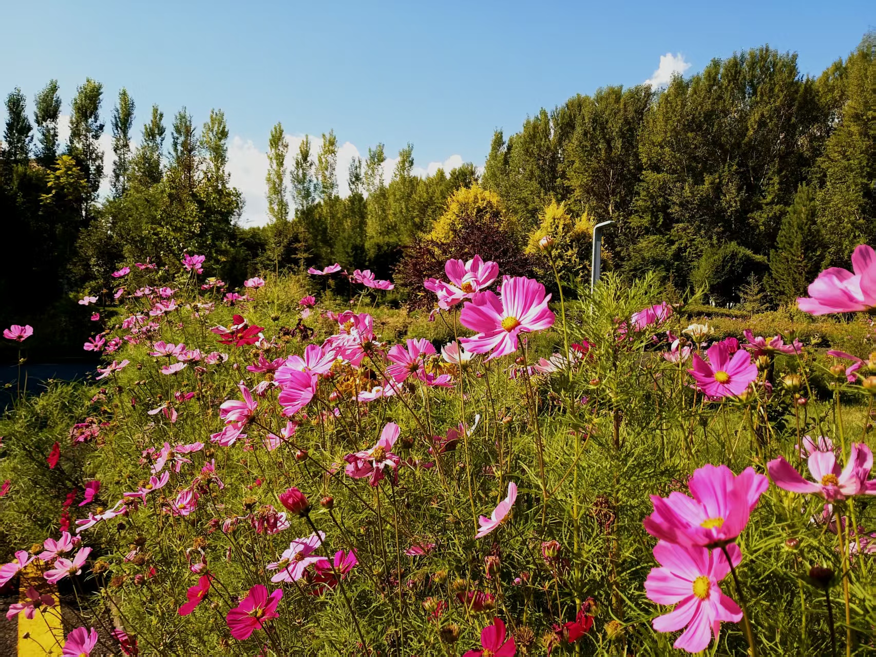8月28日,笔者在吉木乃县体育公园看到,五彩缤纷的鲜花遍地盛放,形成一道绚丽风景。花丛间,蜜蜂忙碌采集花蜜,蝴蝶翩翩起舞,与园中盛开的缤纷花朵相映成趣,让游客们获得视觉享受。
