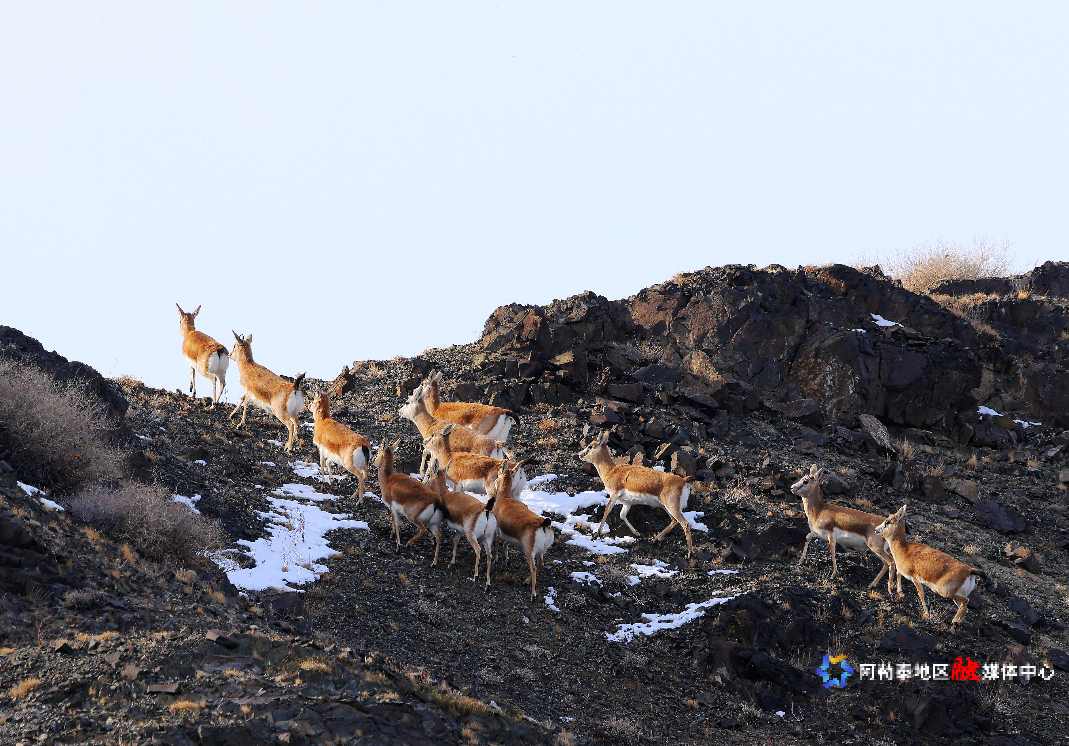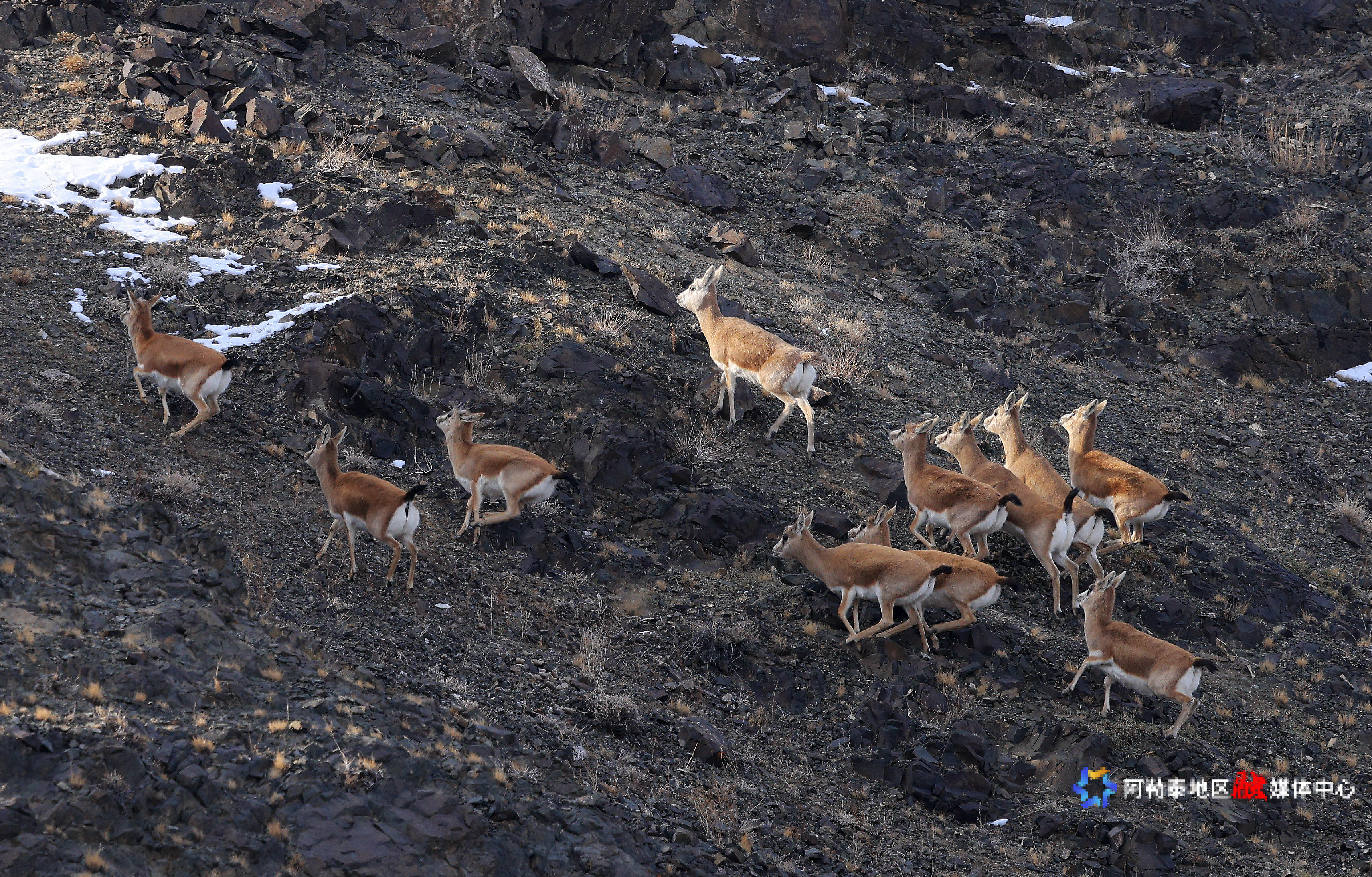 阿勒泰新闻网-阿勒泰地区融媒体中心(记者 阿尔达克·拜斯汗 摄)11月20日,布尔津县科克森山自然保护区,成群结队的鹅喉羚在山岭戈壁间觅食、奔跑,场面颇为壮观。