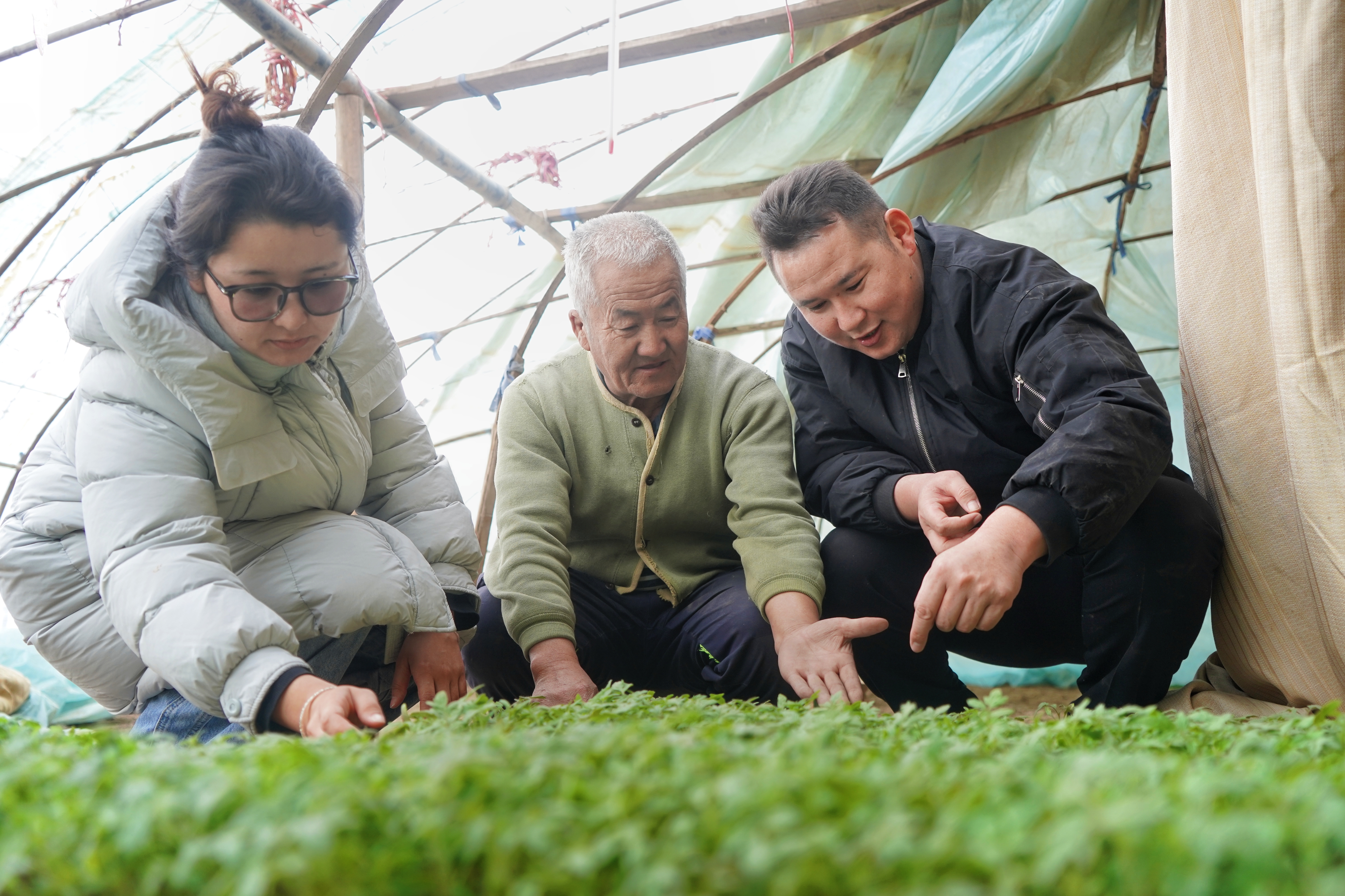 育苗质量是春季丰产的关键。为帮助农户育好苗、种好菜,克孜勒库都克村组织农业技术人员深入大棚开展“点对点”指导。技术人员蹲在育苗盘旁,仔细查看苗情,耐心讲解选种、温湿度调控、病虫害防治等实用技术,针对农户遇到的难题现场答疑,帮助大家掌握科学育苗方法,切实解决育苗过程中的后顾之忧。