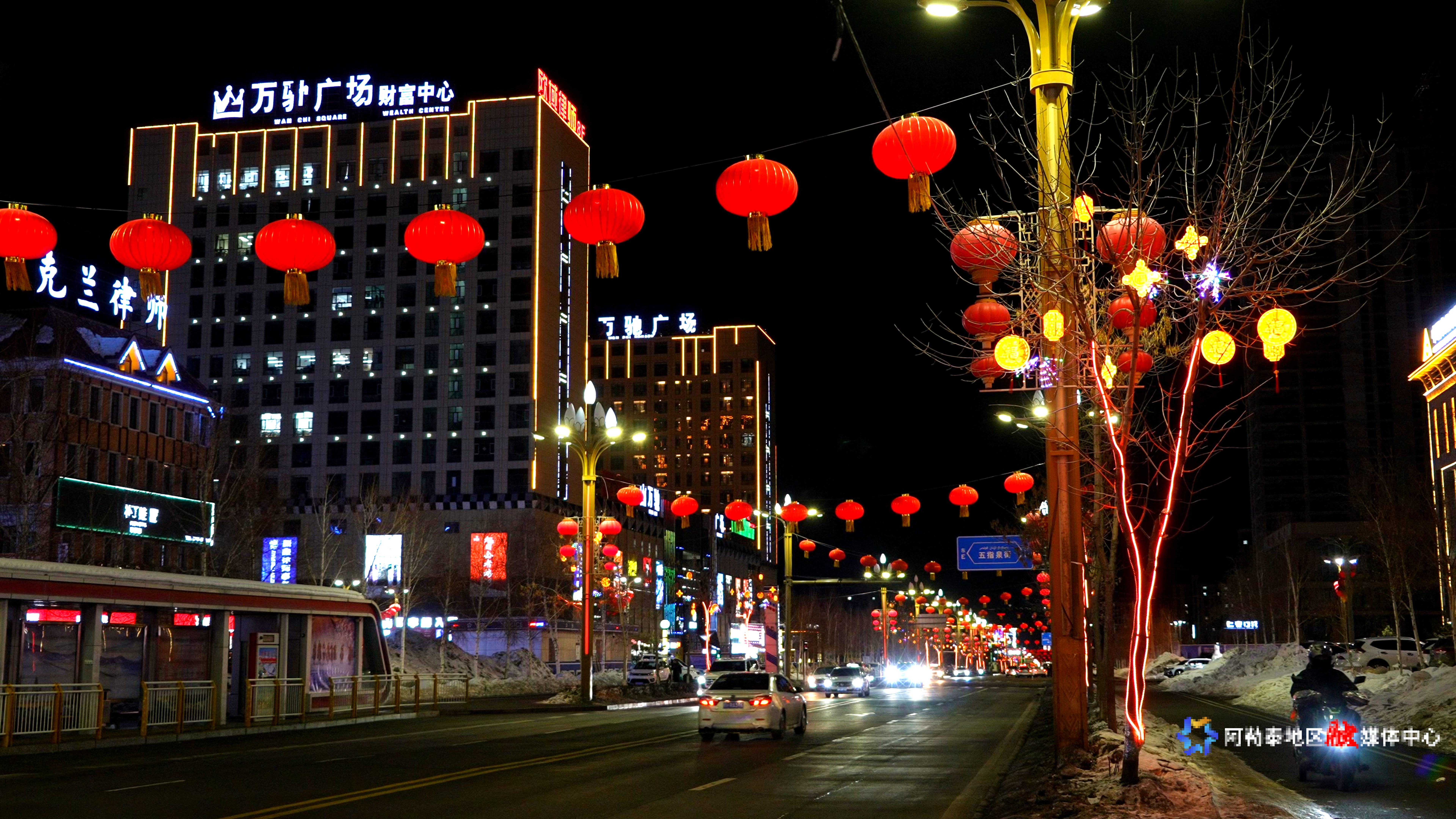 阿勒泰市区红灯笼不仅扮靓了城市。实习记者 马海娜·马格尔 摄