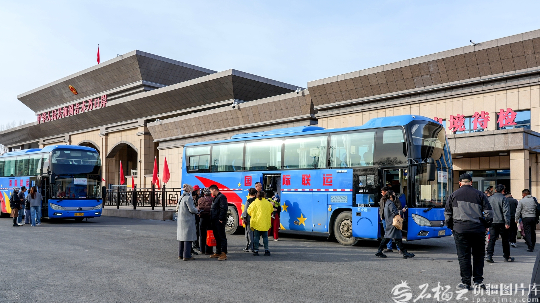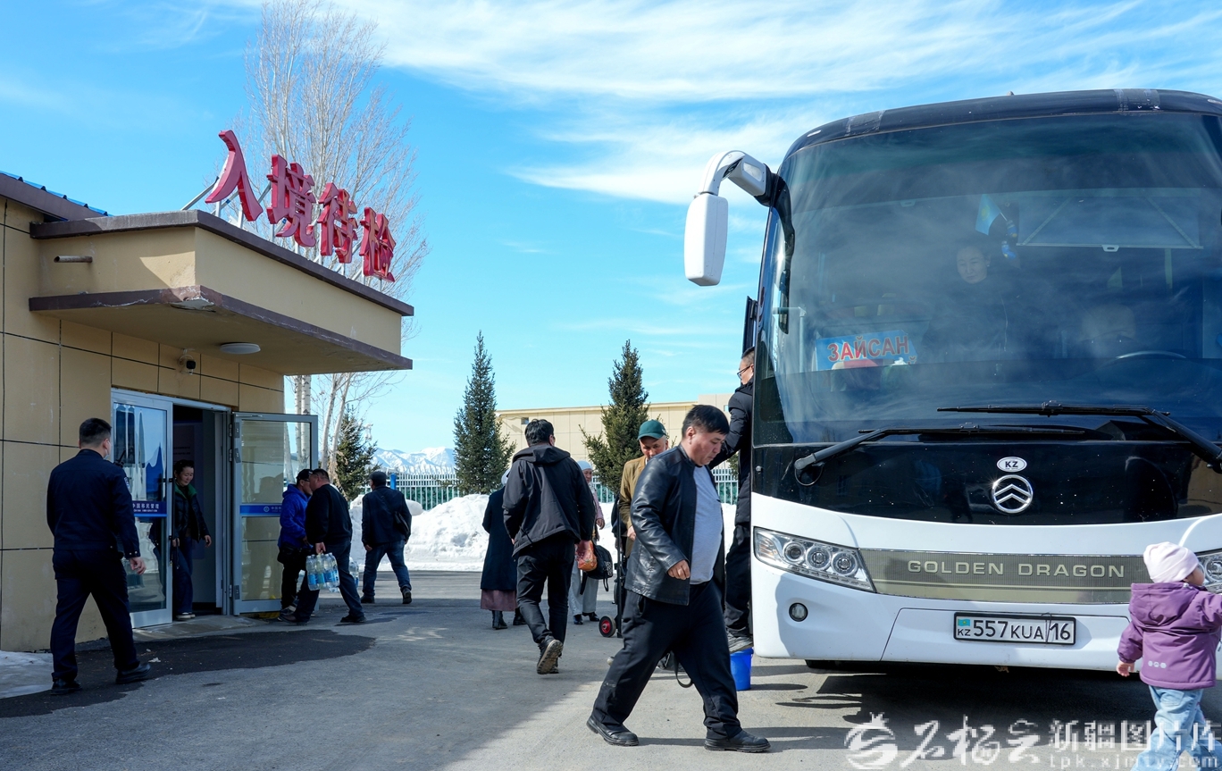 4月1日,旅客在吉木乃口岸办理边防检查手续后,乘坐国际客运车辆出境,方便快捷。 胡阿尼什·那斯哈提 摄