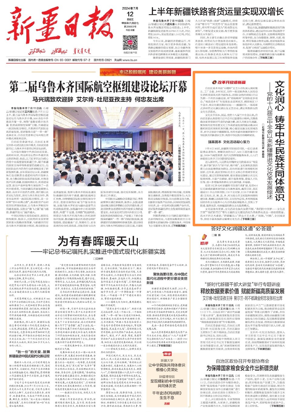 文化关乎国本、国运。党的十八届三中全会以来,自治区党委认真贯彻习近平总书记重要指示精神,完整准确全面贯彻新时代党的治疆方略,深入开展文化润疆,聚焦制约宣传思想文化工作高质量发展的重点难点问题和深层次体制机制问题,精心谋划实施文化领域改革,在守正创新中破题解局,有形有感有效做好铸牢中华民族共同体意识工作,构筑中华民族共有精神家园。