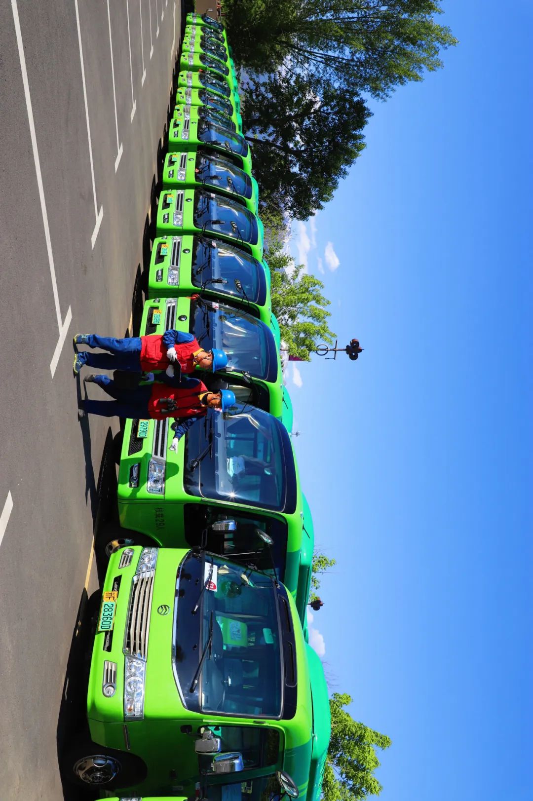 员工对赛里木湖景区电动观光车及电力设施进行巡检。摄影师@马元