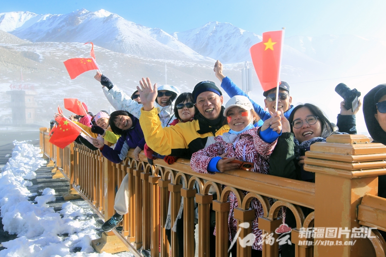 在红其拉甫口岸,伴随着雄壮的国歌声,鲜艳的五星红旗缓缓升起,新疆出入境边防检查总站红其拉甫出入境边防检查站的民警和来自全国各地的游客面向国旗行注目礼,爱国之情从心底油然而生。