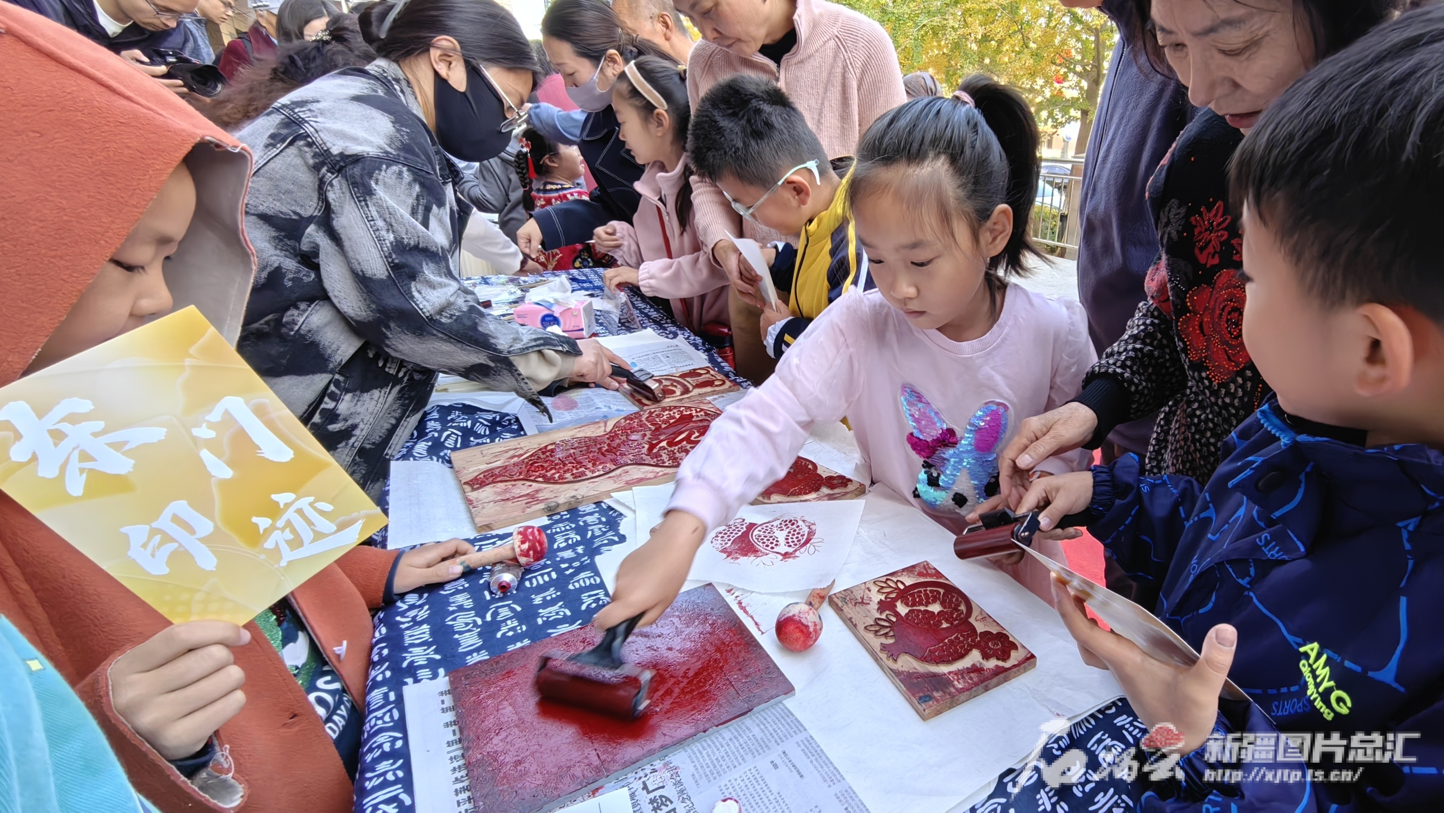 10月13日,居民在体验木板拓印。