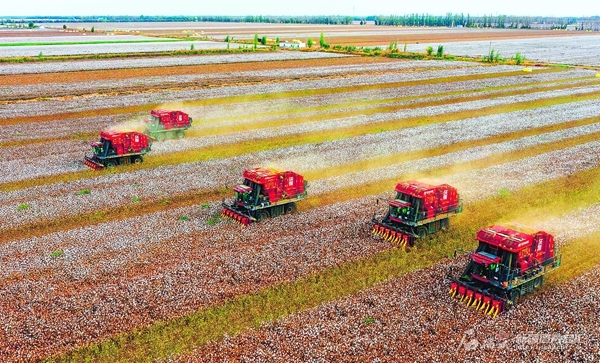 洁白如雪的快乐在传递,从田间隆隆的采棉机,到满载新棉的装载车;从轻柔如云的棉朵,到纺纱机吐出的根根纱线,再到一件件高品质的衣物……丰收的喜悦一点点变成驱寒送暖的衣物,温暖了四季,也温暖了每一个人。