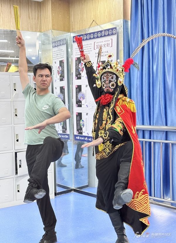 “变脸的关键在于动作的迅速与精准,每一个抬手、扭头动作都要有节奏感。记住,变脸不仅是技术更是艺术,要将情感融入其中,让每一次变脸都能传达出角色的内心世界。”阿力木江一边指导其动作,一边讲述着变脸技艺的精髓。艾孜热提约麦尔聚精会神地听着,不时地点头。一个教得认真,一个学得刻苦。