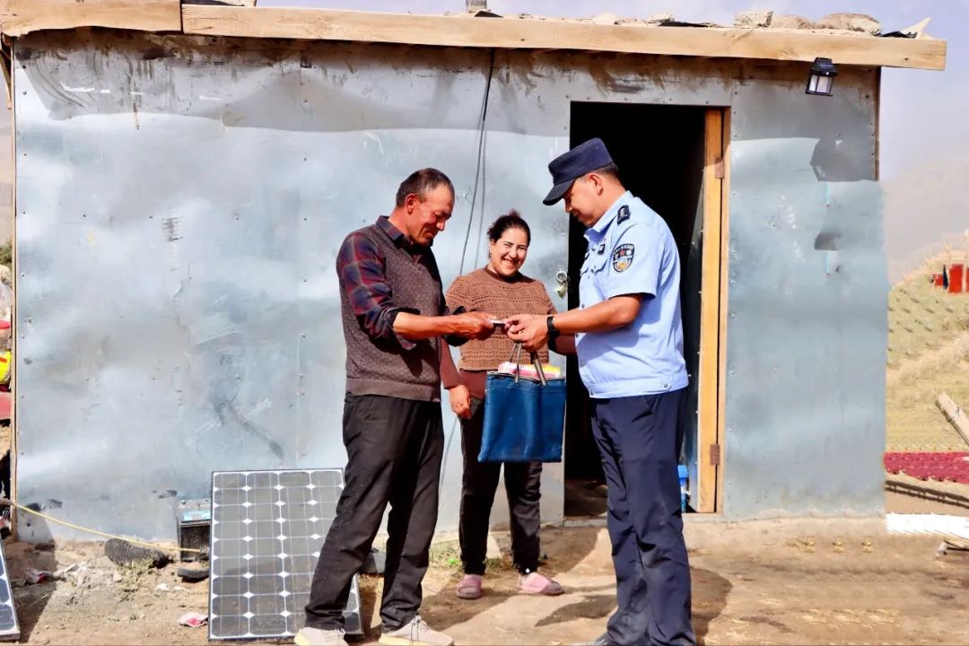 “牧民转场到哪里,我们的工作就要跟进到哪里!”9月30日一大早,吐拉警务室民警辅警拿着牧民新办下来的身份证、户口簿以及精心准备的法律宣传单,跃马扬鞭奔向草原深处,开始了偏远散牧区走访、送证上门、帮扶解困、政策宣传等工作。他们进山必带的,一个是本子,记录着牧民的采购清单,一个是袋子,装着满满的帮助群众采购的物品。他们在被需要的地方扎下根,在被需要的地方捧出爱。