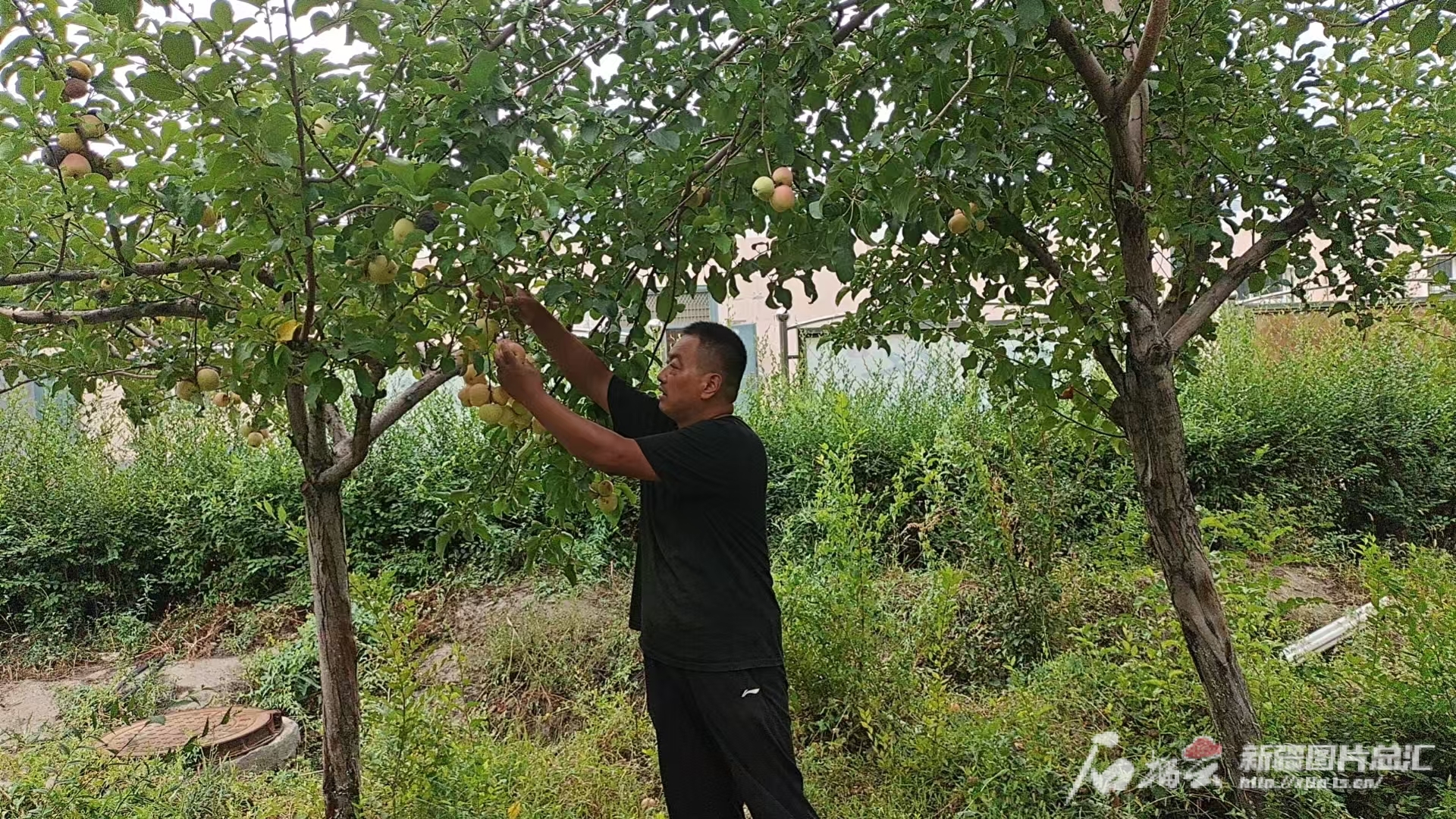 2024年8月,郭东楼在果园里查看苹果长势。图片由受访者提供