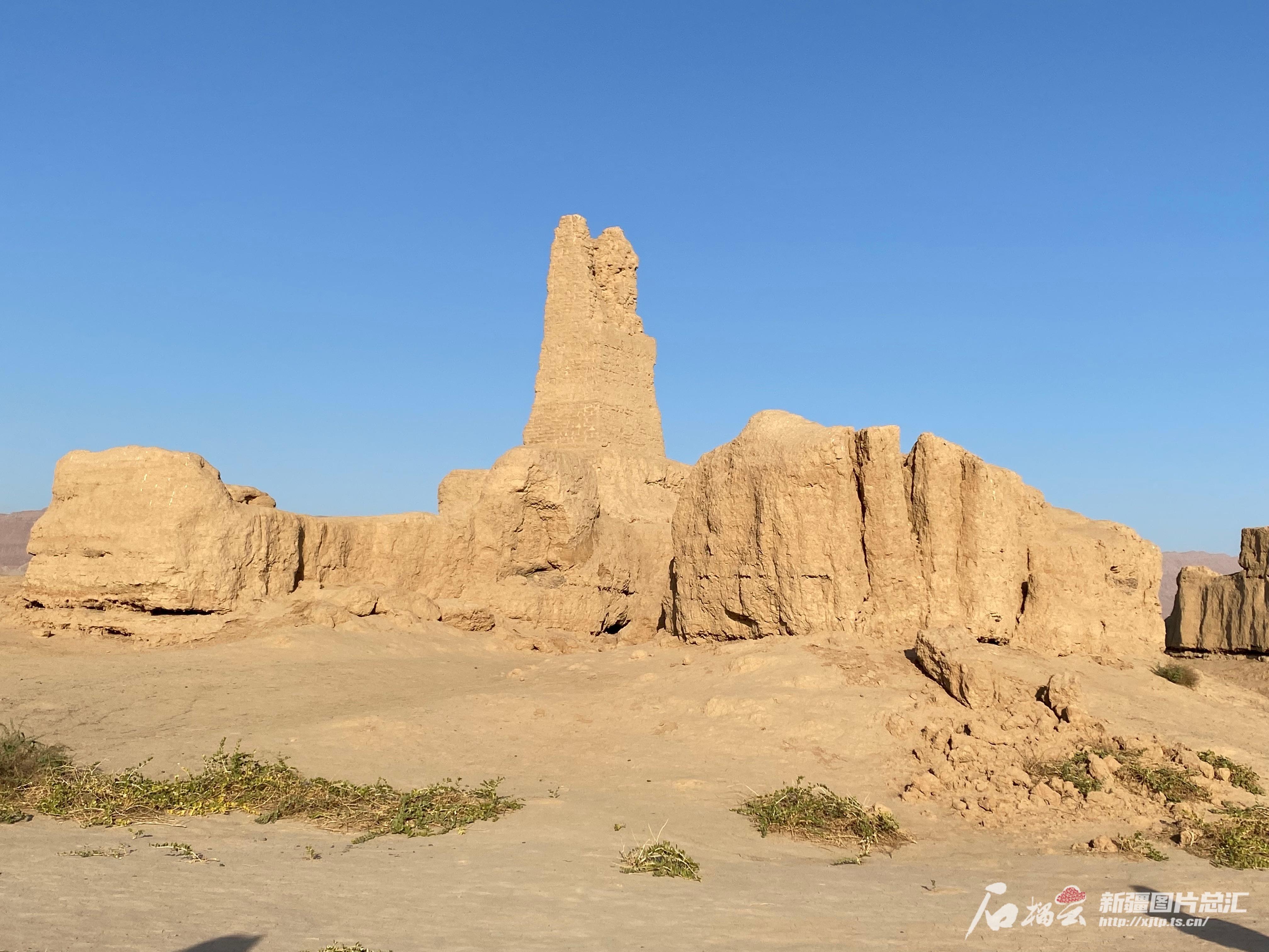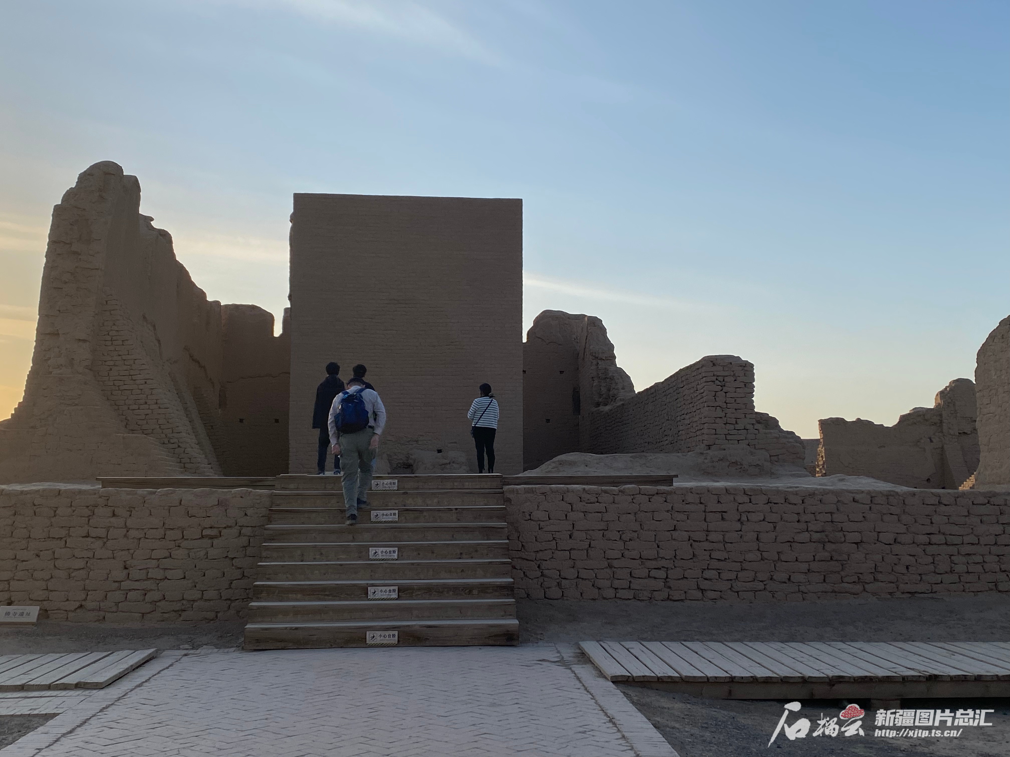 继续往前走,来到了位于故城中心土台地上的可汉堡遗址。走进堡内,北面的高台上有座高达15米的方形塔建筑。土台西侧有一座上下层建筑,现仅存地下部分,南、西、北三面有宽大的阶梯式门道,规模虽不大,但与交河故城现存唐代最豪华的官署衙门的建筑形式相同,可能是宫殿遗址。