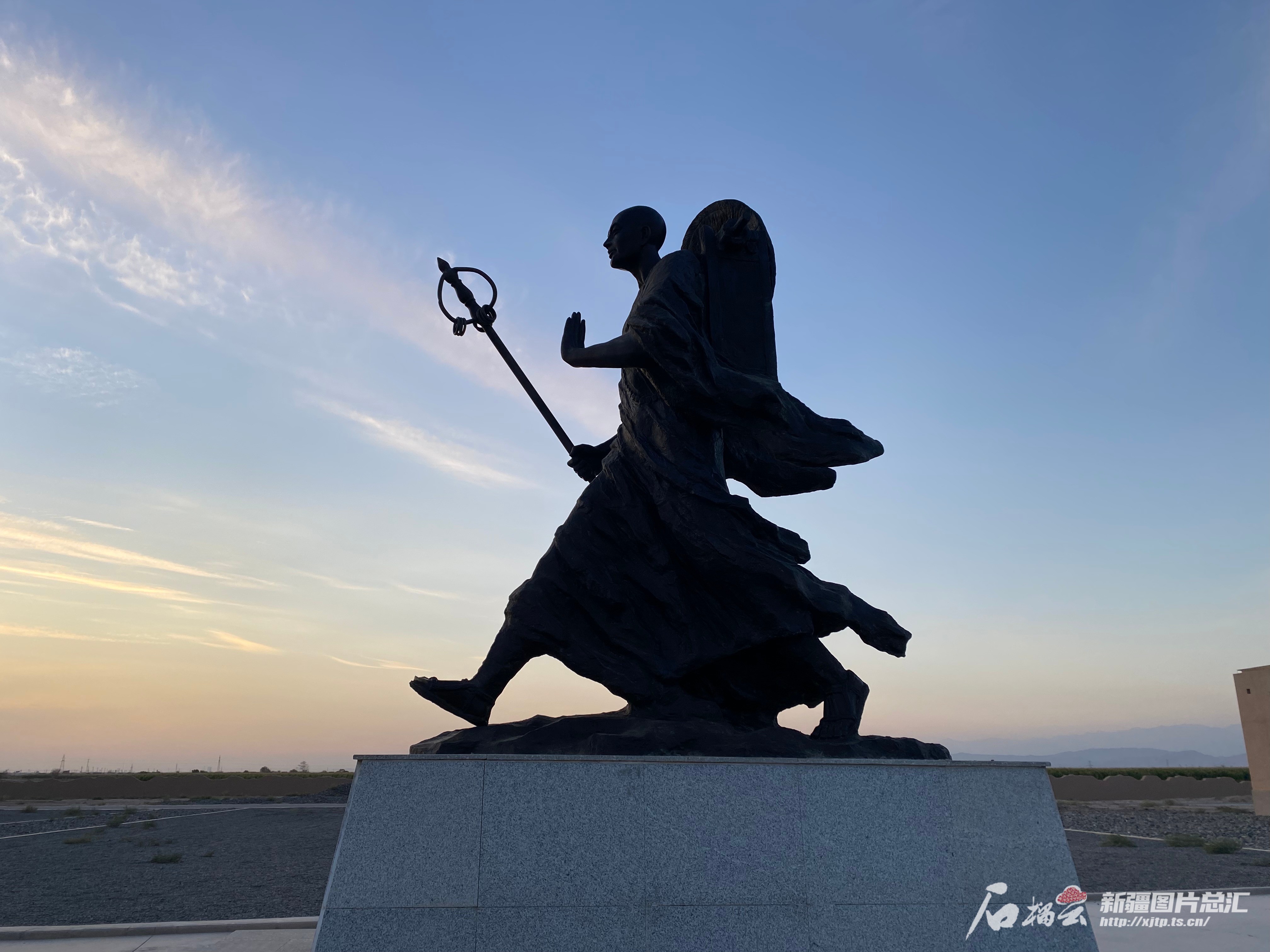 高昌故城游客服务中心门前的玄奘铜像。石榴云/新疆日报记者 赵梅摄