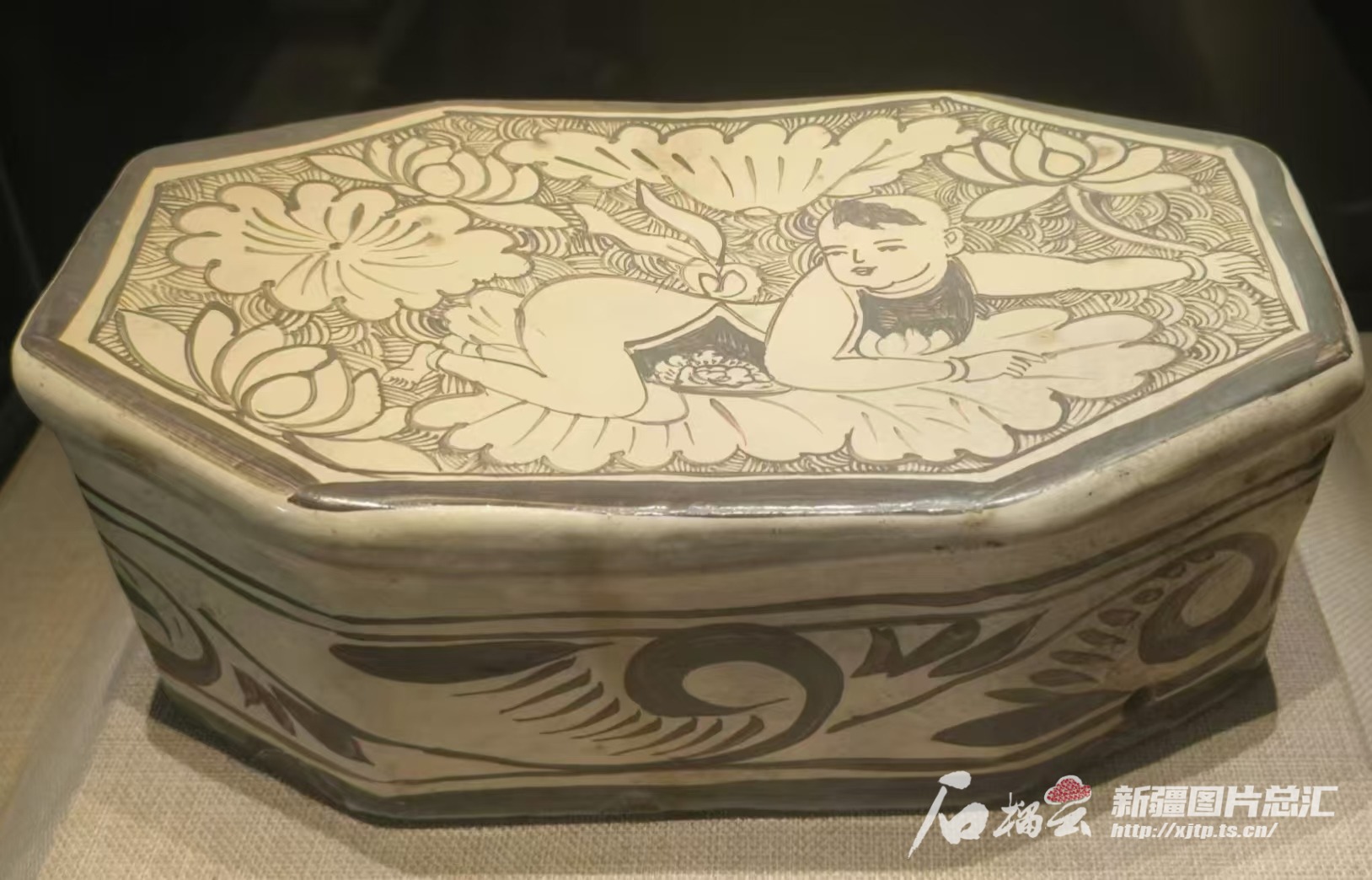 阿克苏地区文博院(博物馆)展出的宋代婴戏纹瓷枕。天山网-新疆日报记者 王新红 摄