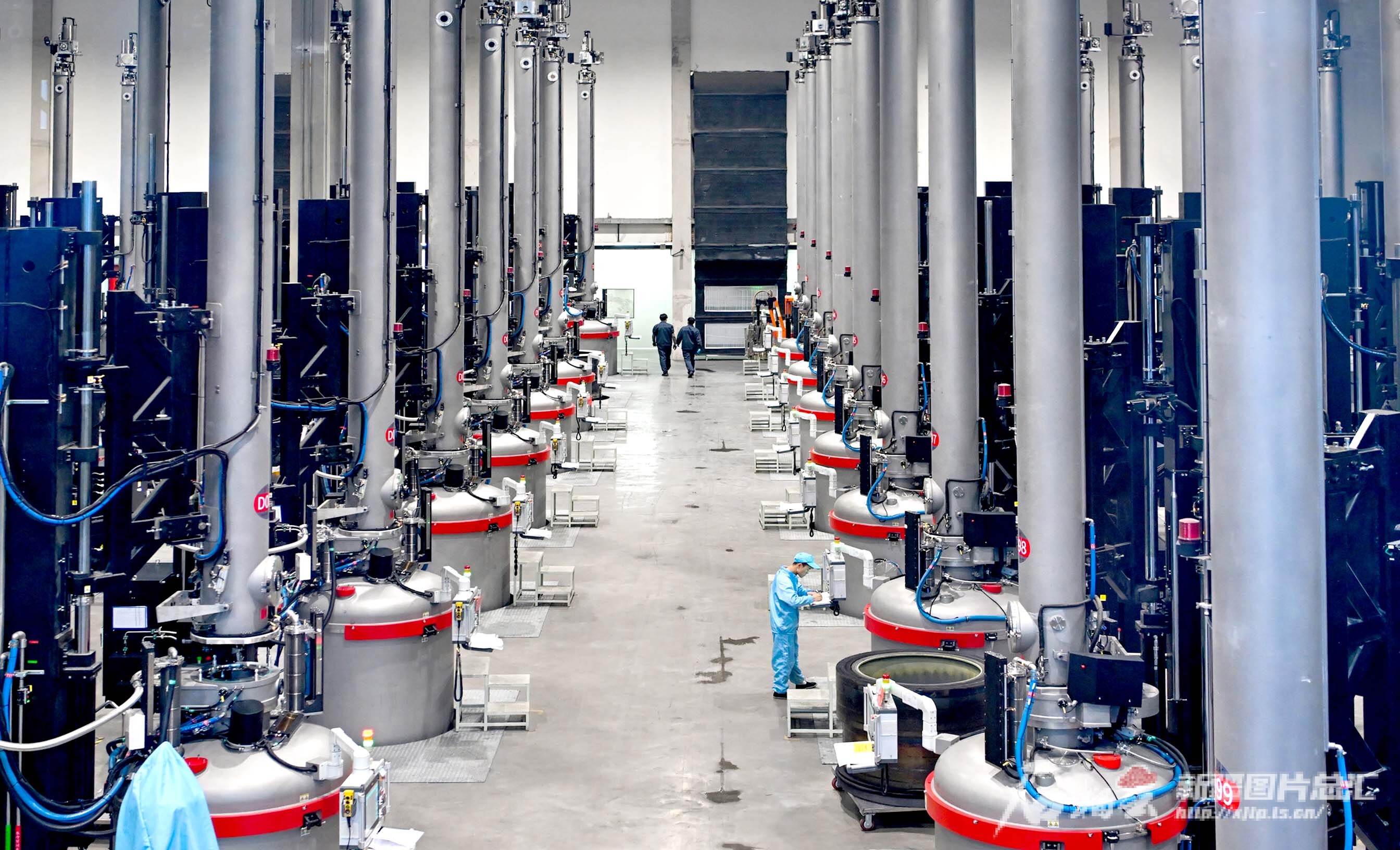 2024年2月27日,位于克拉玛依市乌尔禾区硅基新材料产业园的新疆晶品新能源有限公司生产车间内,工人在查看设备运行情况。闵勇摄