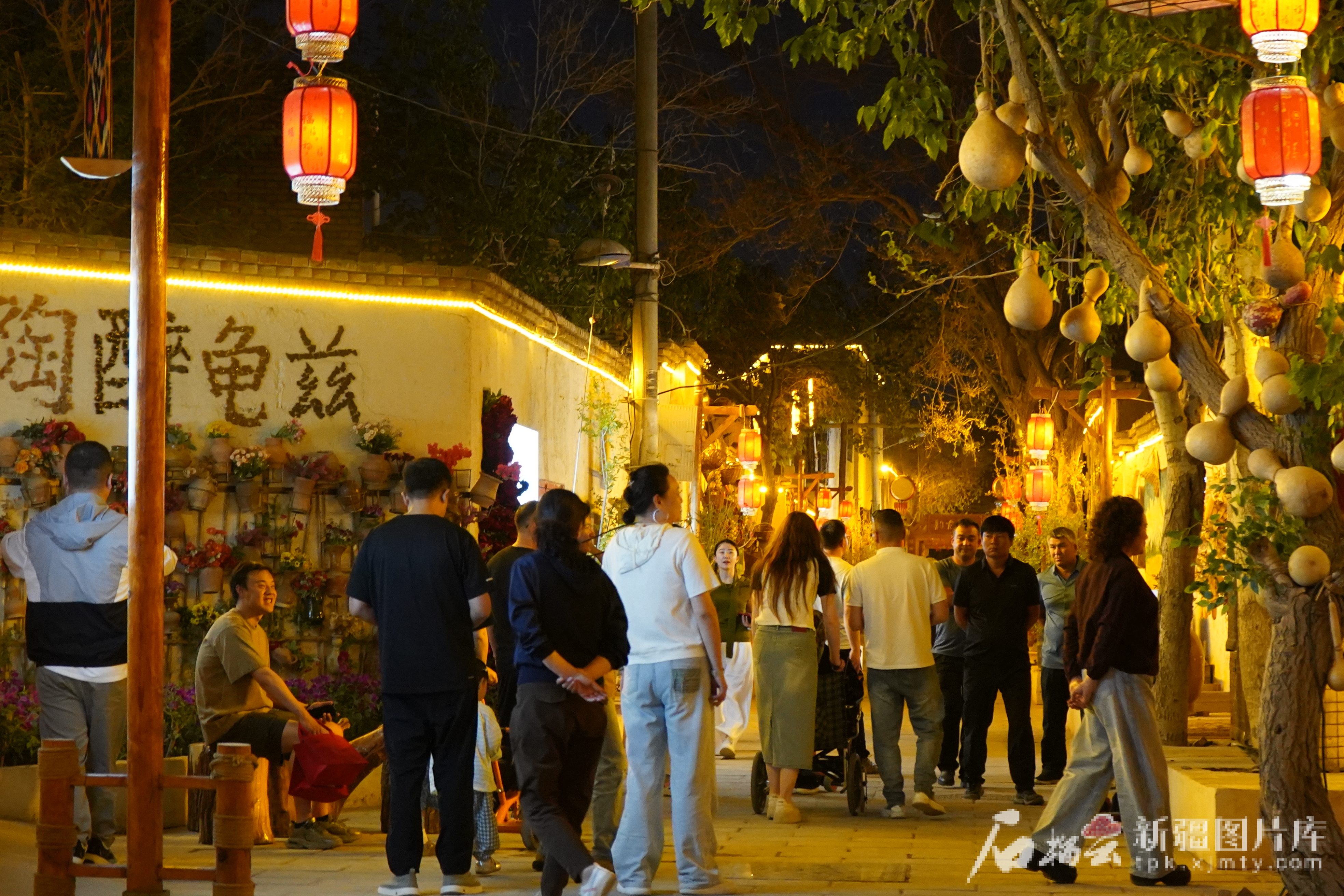 “五一”假期,库车市热闹的夜晚。孟文静 摄