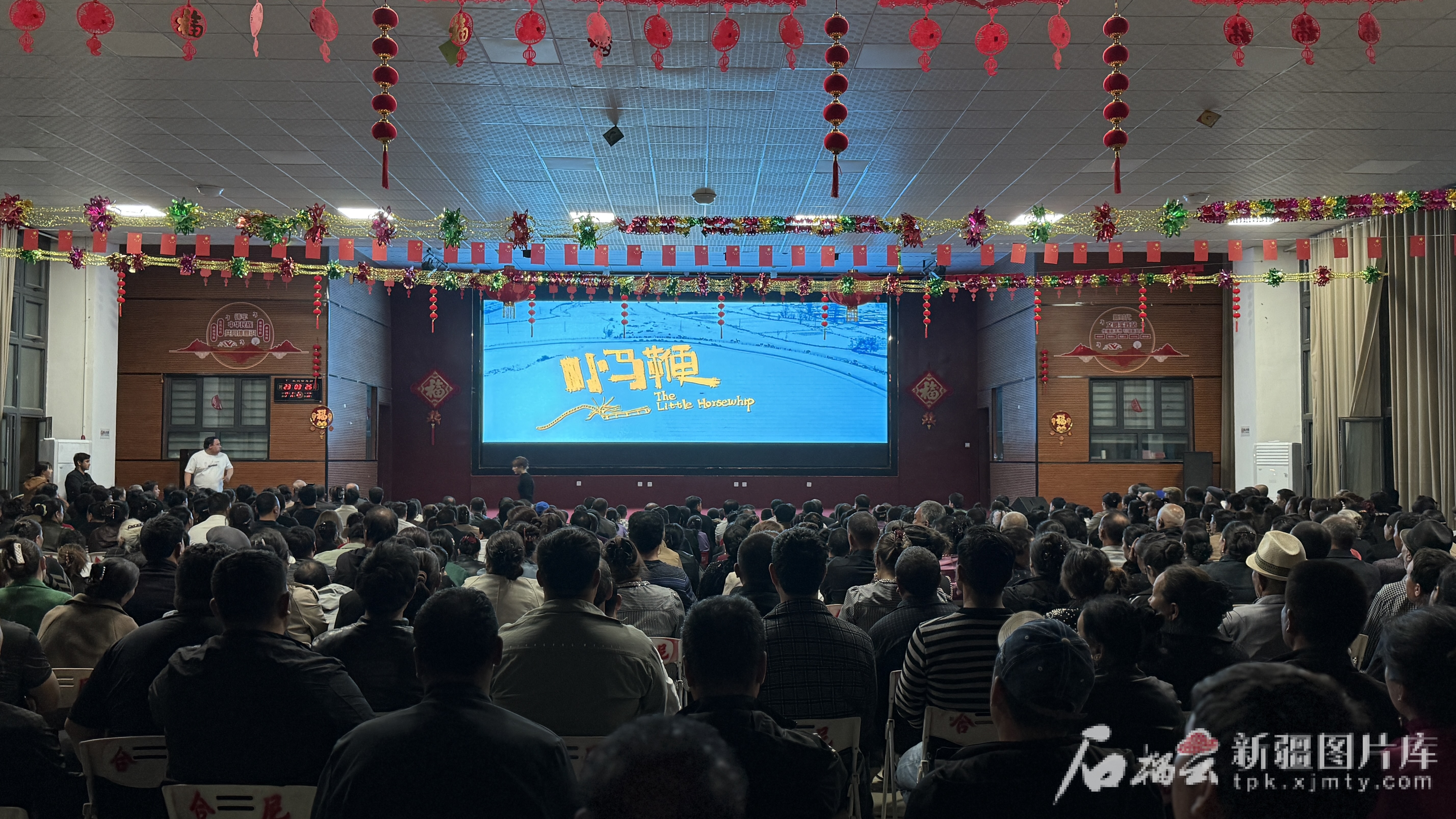 3月25日,和田市肖尔巴格乡合尼村,村民在新时代文明实践站观看电影《小马鞭》。努尔古再丽摄
