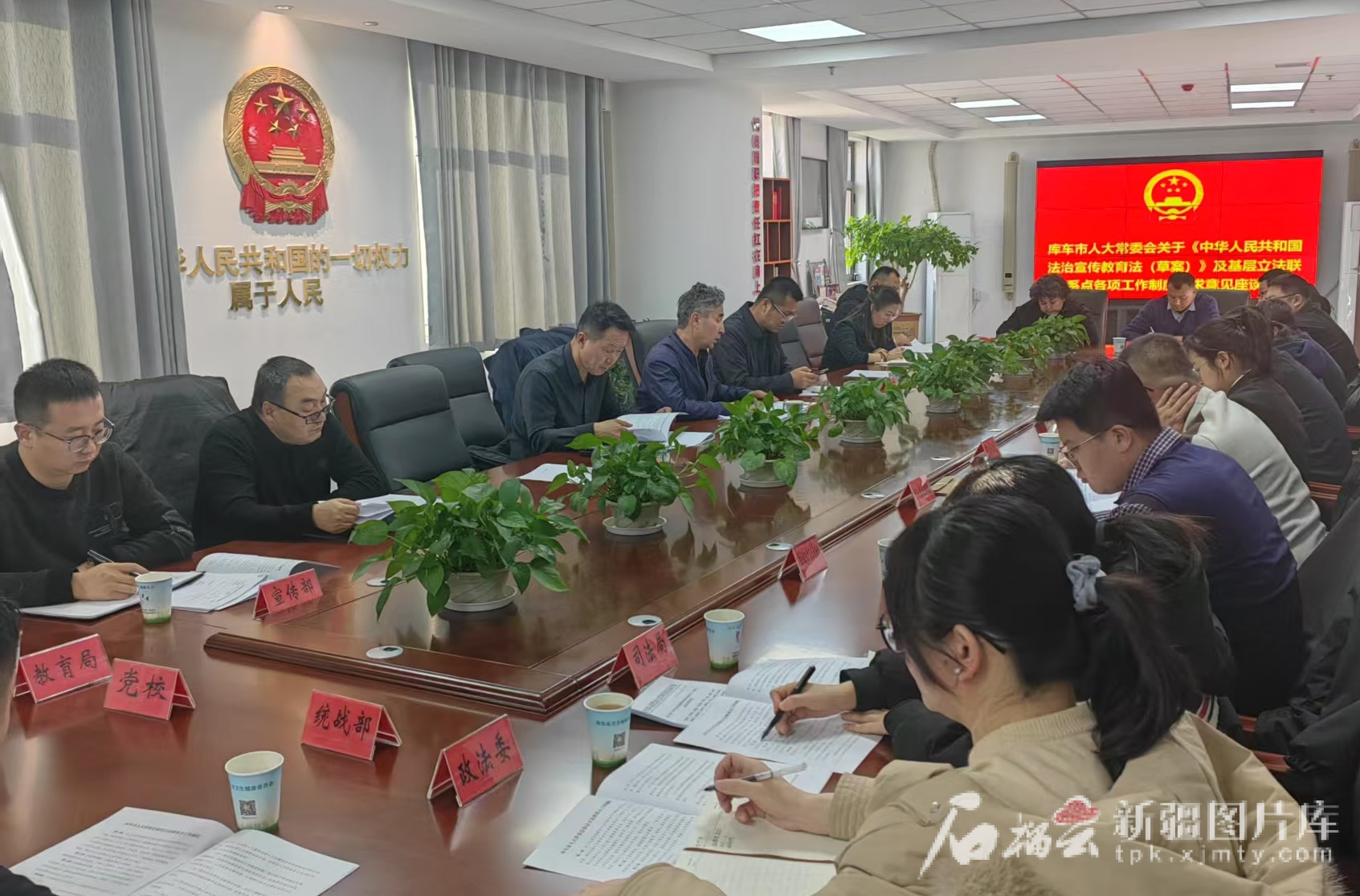库车市人大常委会基层立法联系点召开《中华人民共和国法治宣传教育法(草案)》征询意见座谈会。受访单位供图