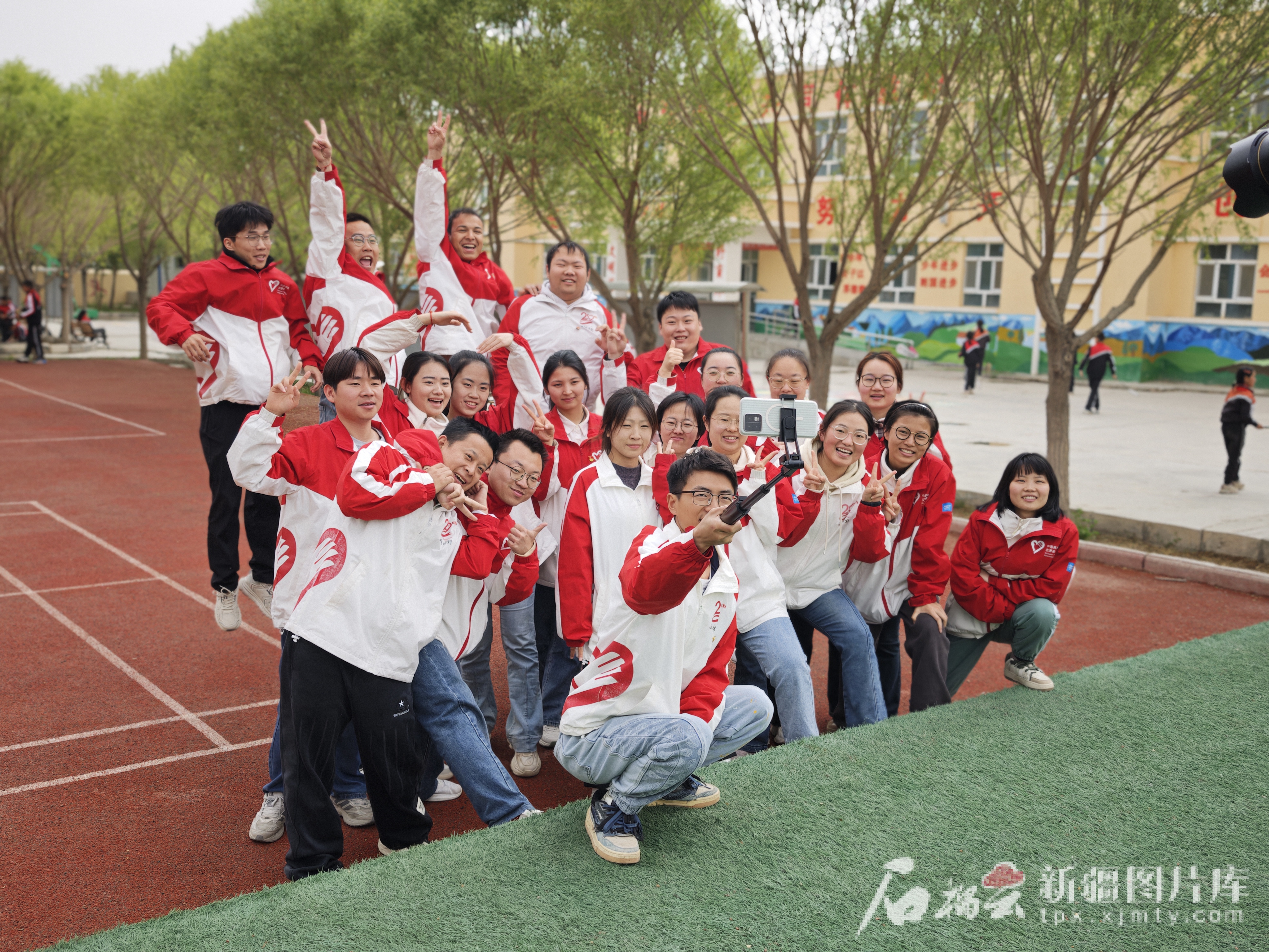 近日,阿图什市哈拉峻乡谢依特小学戍边支教西部计划志愿者服务队全体队员合影留念。图/阿图什市哈拉峻乡谢依特小学提供