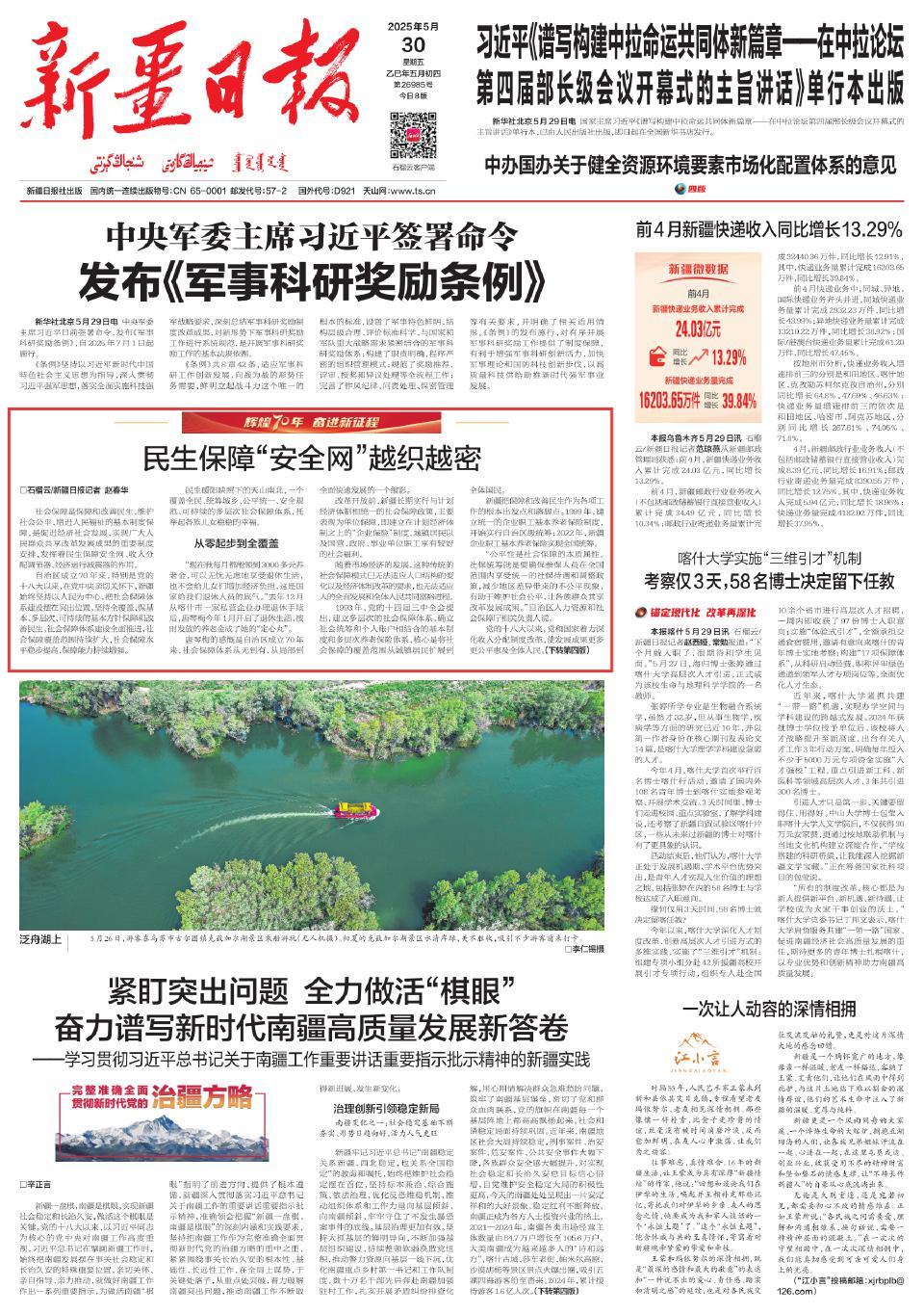 “党的十八大以来,中国社会保障事业取得了巨大的历史性成就。自治区党委和政府完整准确全面贯彻新时代党的治疆方略,坚持以人民为中心的发展思想,在社会保障方面坚持制度创新,加大政策倾斜力度,确保精准服务,构建起了覆盖全民、统筹城乡的全覆盖社会保障网络。不断满足新疆各族人民民生基本需求的同时,还使高质量发展的成果惠及了全疆人民,推动各民族团结与社会和谐稳定,在社会保障层面为我国边疆地区治理提供了中国式现代化新疆实践的治理样本。”中国社会科学院马克思主义研究院中国特色社会主义理论体系研究室主任、研究员沈阳说。