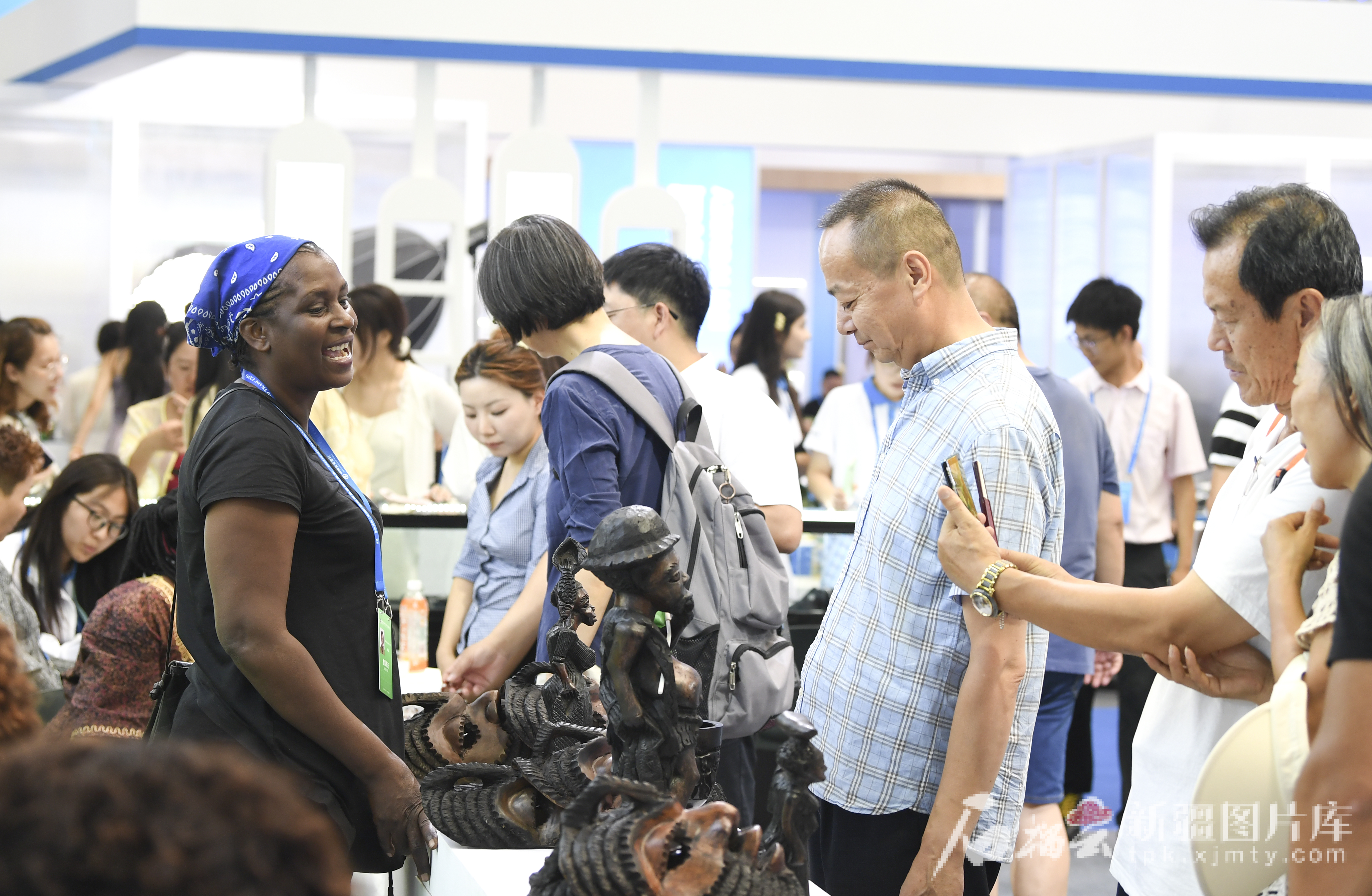 6月28日,参观者在赞比亚商品馆选购商品。