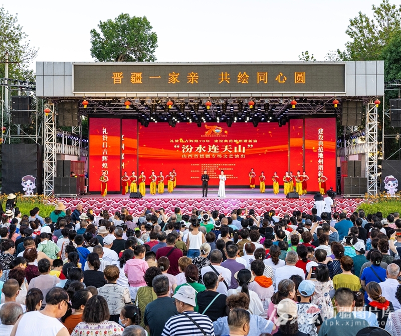 以“礼赞昌吉辉煌70年 建设典范地州谱新篇——‘汾水连天山’”为主题的山西省援疆专场文艺演出在昌吉市精彩上演(2024年7月12日摄)。图片由山西援疆前指提供