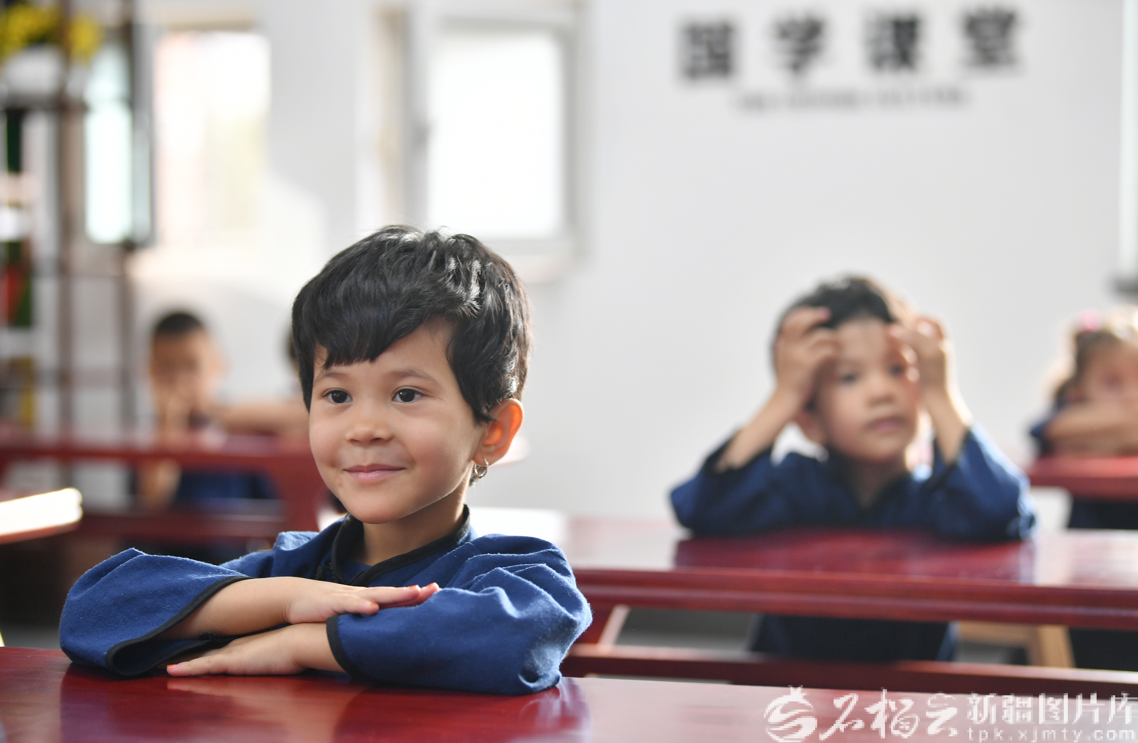 9月8日,固原巷的小朋友在国学课堂听课。