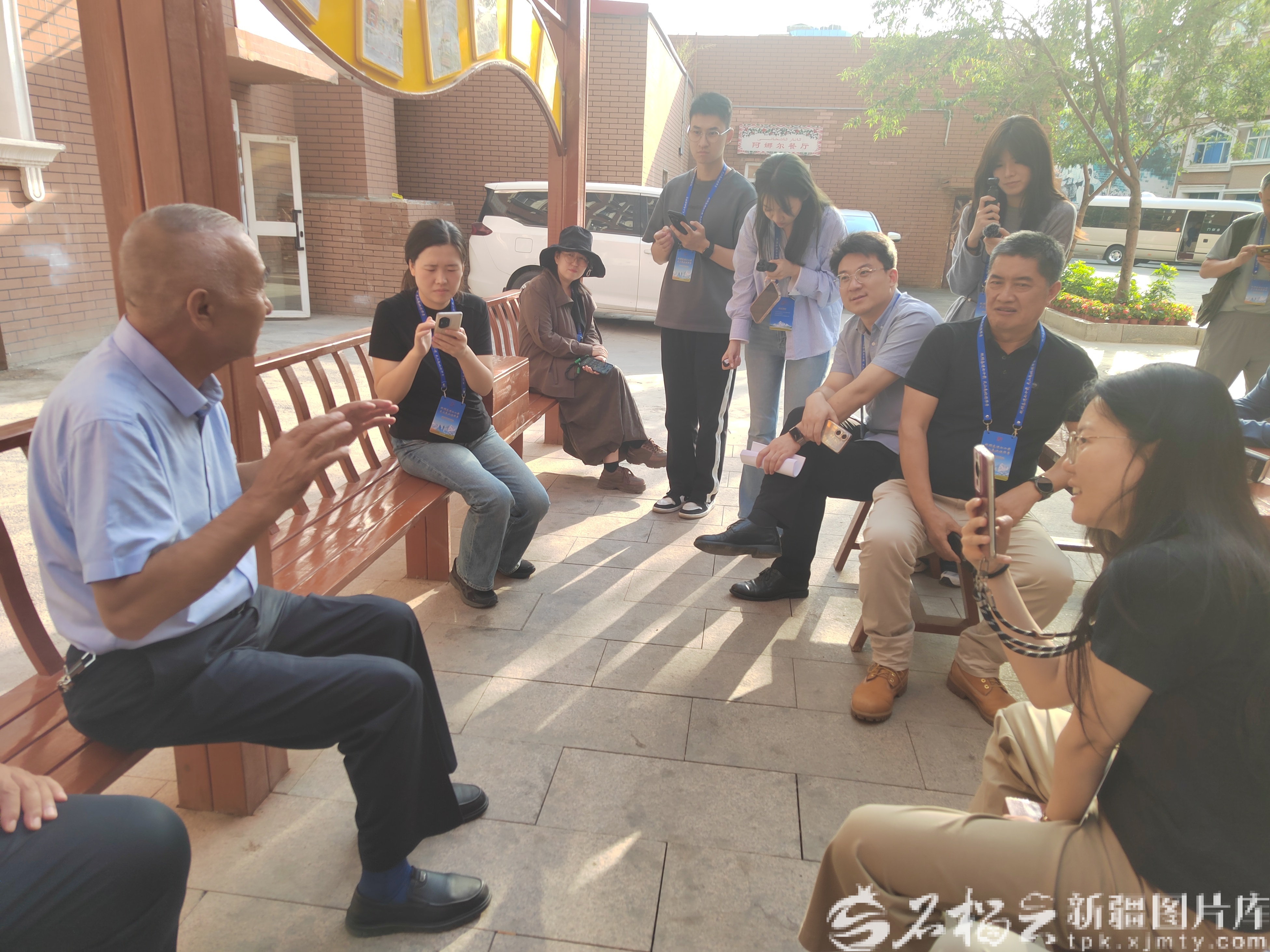 9月8日,采访团一行在固原巷社区长廊里和居民座谈。