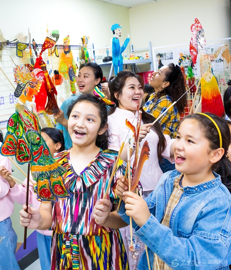 9月15日,孩子们在体验皮影戏。当日,乌鲁木齐市天山区胜利路街道羊毛湖社区组织开展了皮影戏体验活动。孙振嵩摄