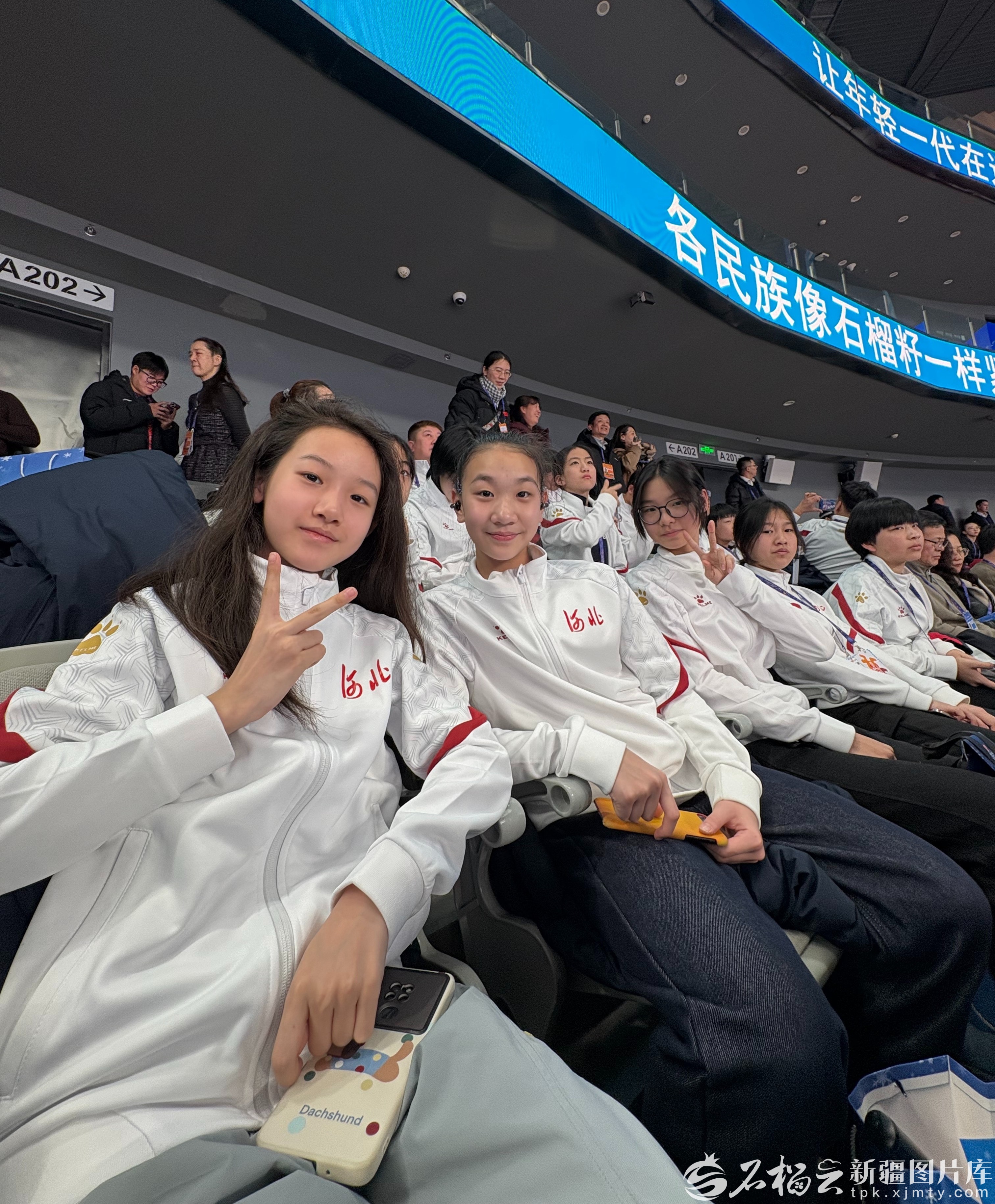 1月29日21时,乌鲁木齐奥体中心综合体育馆,2026年“奔跑吧·少年”全国青少年冬季阳光体育大会开幕式现场,来自河北代表队的小运动员们留下合影。天山网-新疆日报记者 王晶晶摄