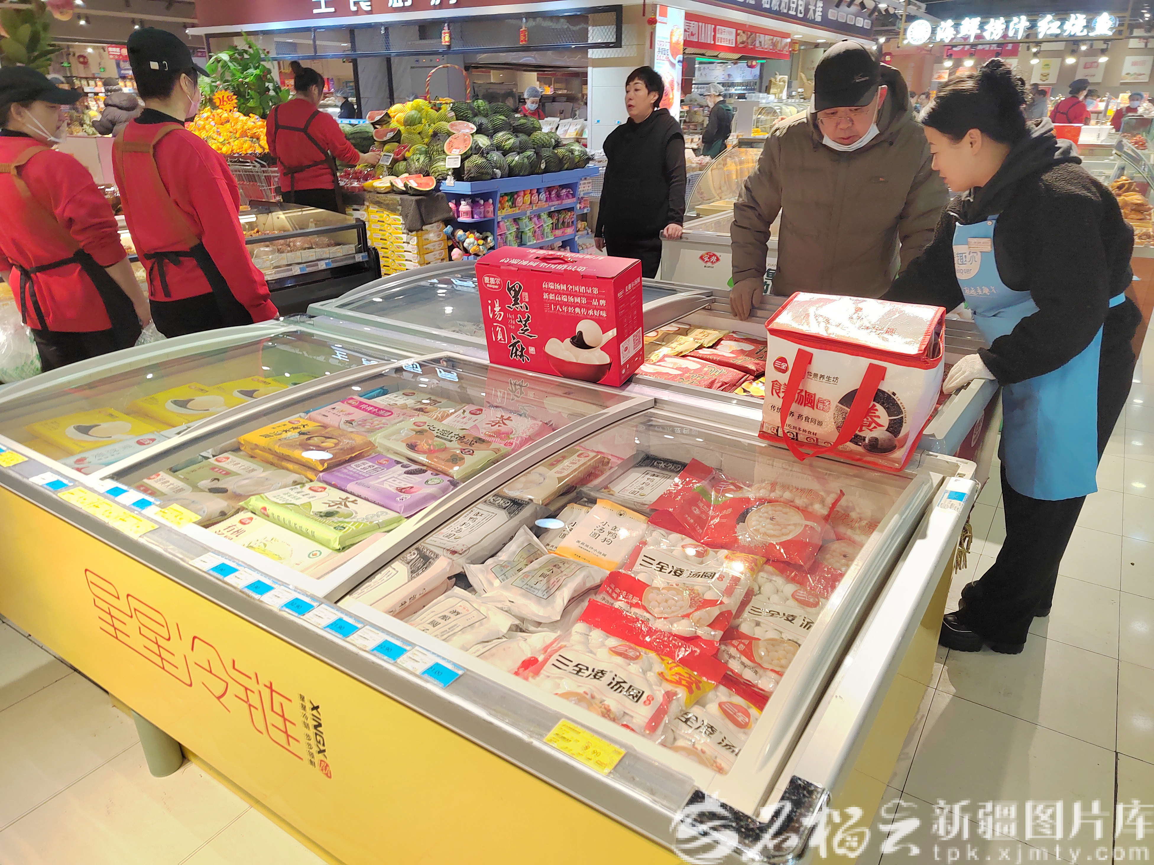3月1日,市民在乌鲁木齐市友好超市友好商场店选购速冻汤圆。