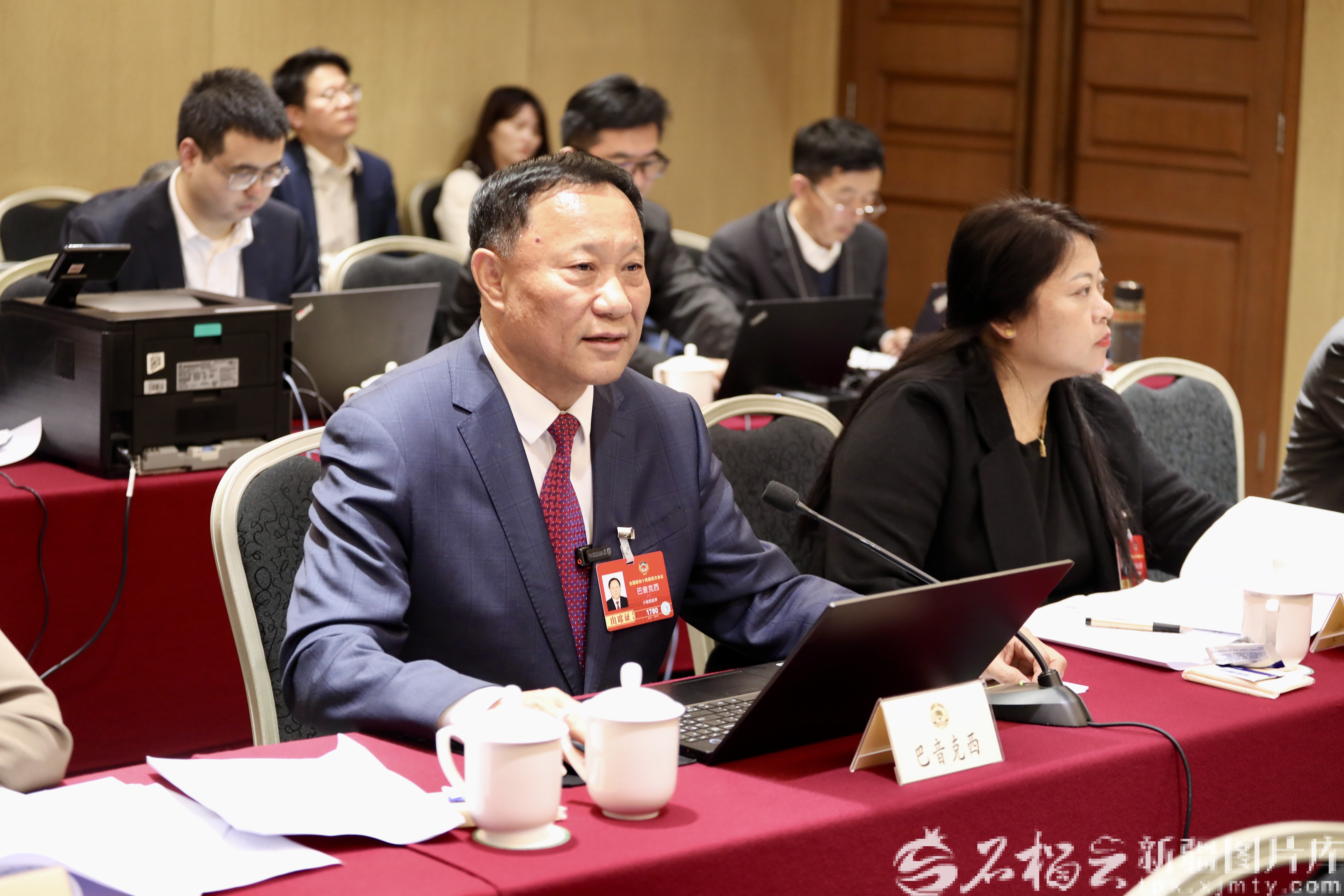 3月5日下午,出席全国政协十四届四次会议的住疆全国政协委员在各界别小组审议政协常委会工作报告和提案工作情况报告。图为巴音克西委员认真听取发言。石榴云/新疆日报记者 王昕摄