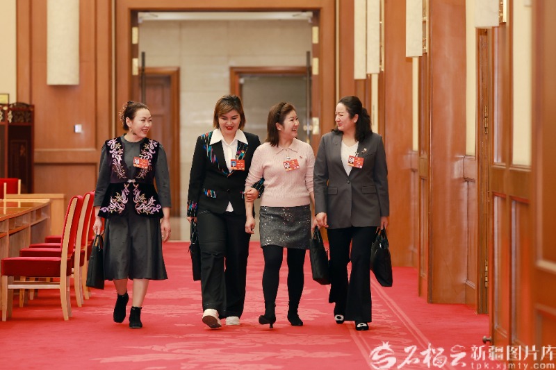 3月8日上午,十四届全国人大四次会议新疆代表团举行小组会议。当日是“三八”国际劳动妇女节,新疆代表团几位代表意气风发地前往会场。天山网-新疆日报记者 崔志坚摄